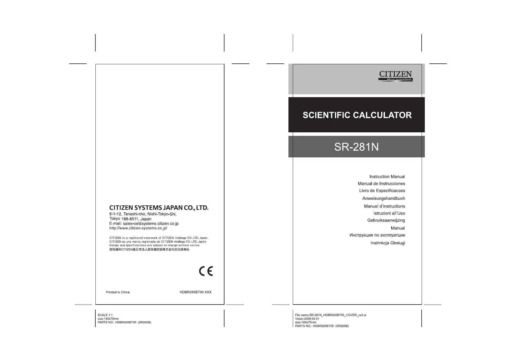 > ERRNE > 3005 (Ëx rad) =1.5 3Lcos]((12(x){2nd](x] we 31 3kcos(2#r+3= F45 File name : SR2G0B_SR-281N_Frnch_v090330.d0c Date: 2009/81 Timmed Sie : 140 X 78 mm SCALE 1:1