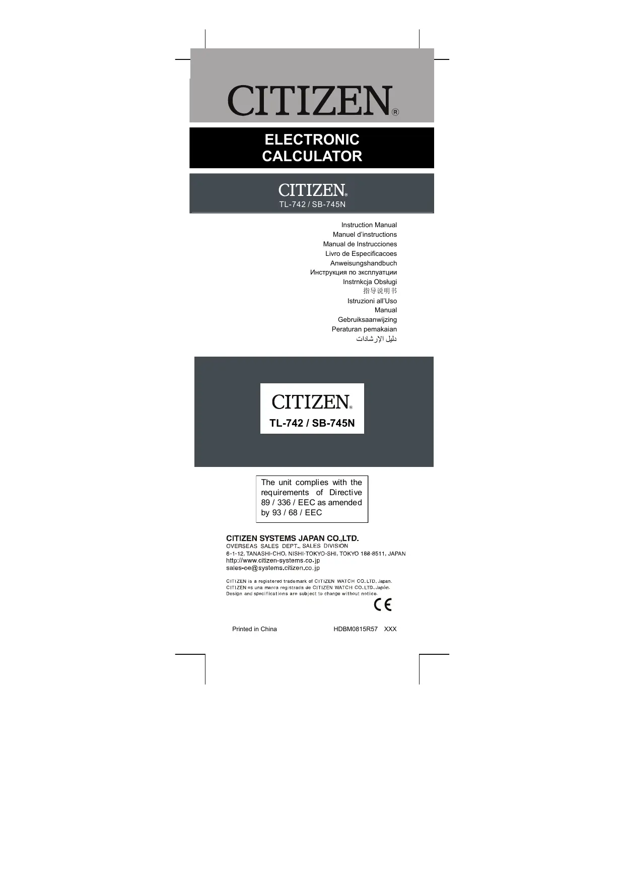 Retrouvez gratuitement la notice de l'appareil TL-742 CITIZEN au format PDF.