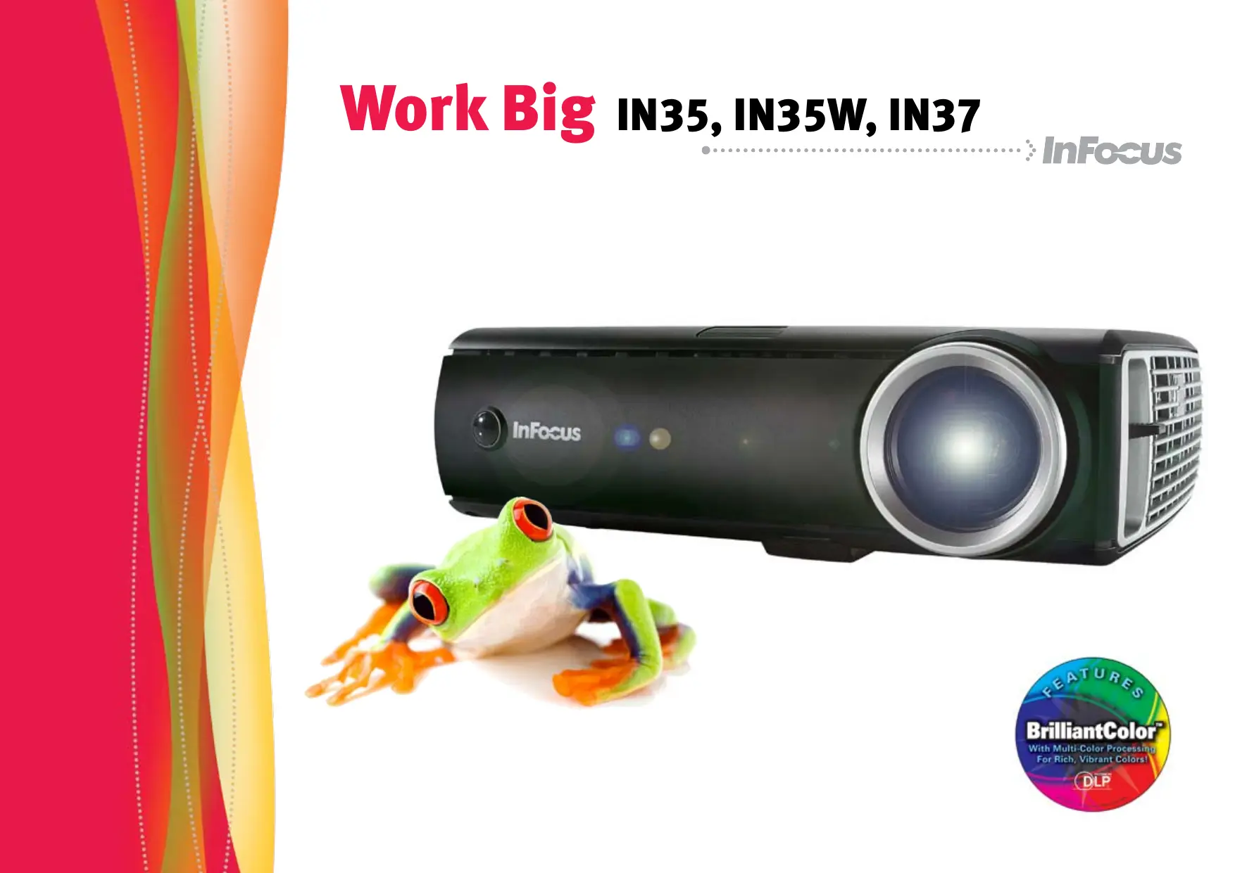 Vous allez être éblouis par les projecteurs numériques multimédia Work Big IN35, IN35W et IN37. Révolutionnaires, ils sont dotés des puces DLP® BrilliantColor™ dernier cri. Profitez enfin de couleurs réaliste d'une précision sans égale!