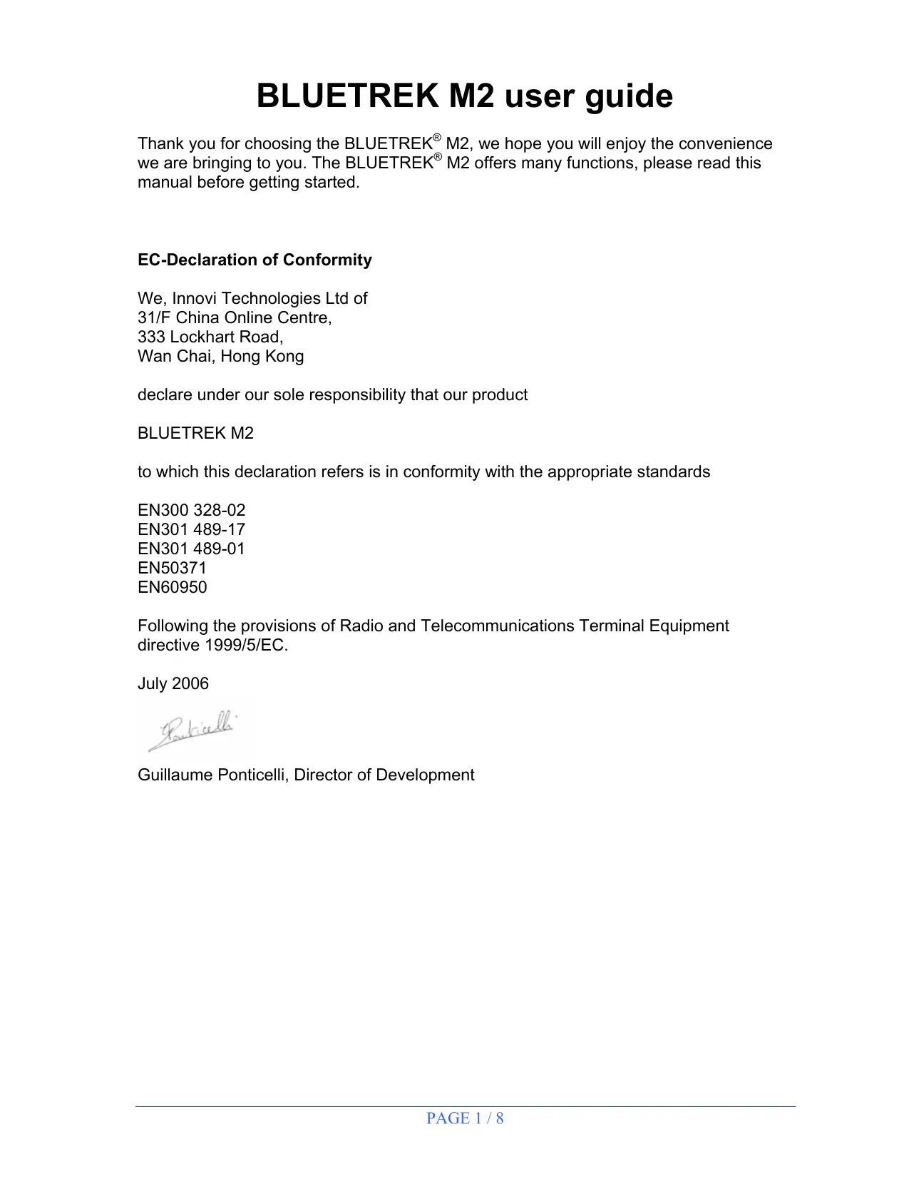 Retrouvez gratuitement la notice de l'appareil M2 BLUETREK au format PDF.