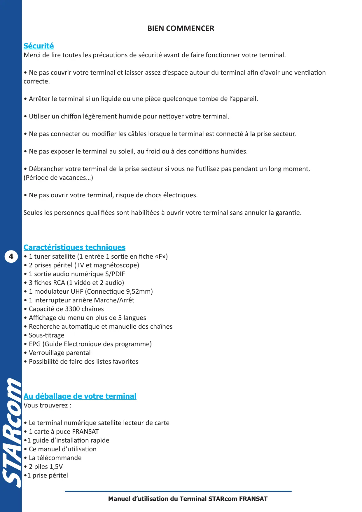Manuel d’utilisation du Terminal STARcom FRANSAT