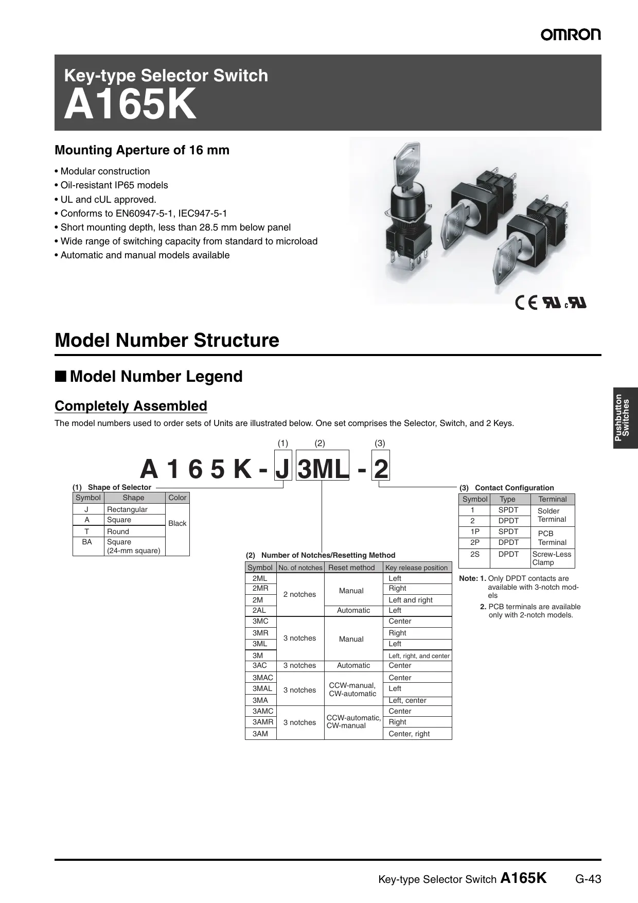 A165K - Interrupteur électrique OMRON - Notice d'utilisation et mode d'emploi gratuit