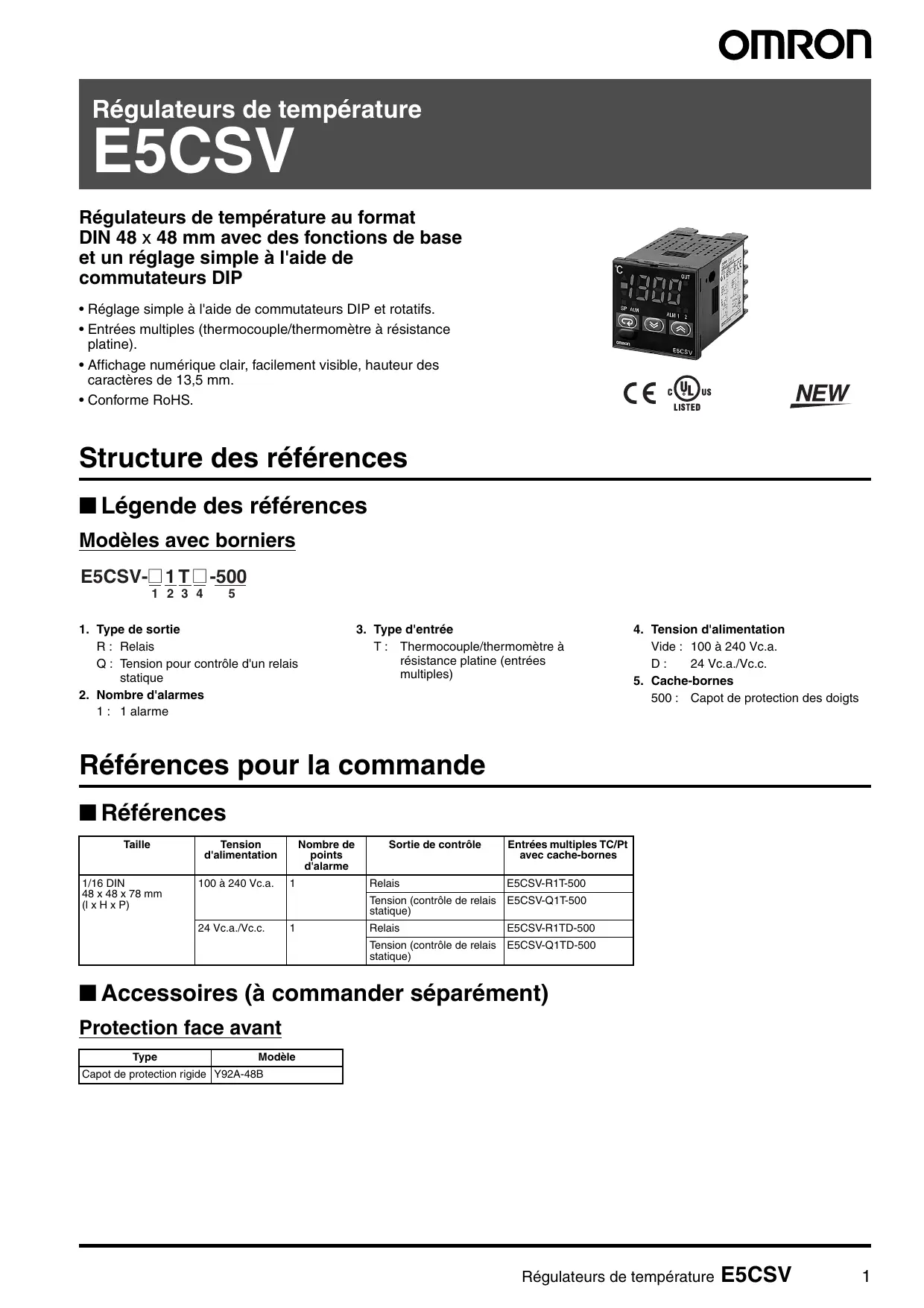 Retrouvez gratuitement la notice de l'appareil E5CSV OMRON au format PDF.