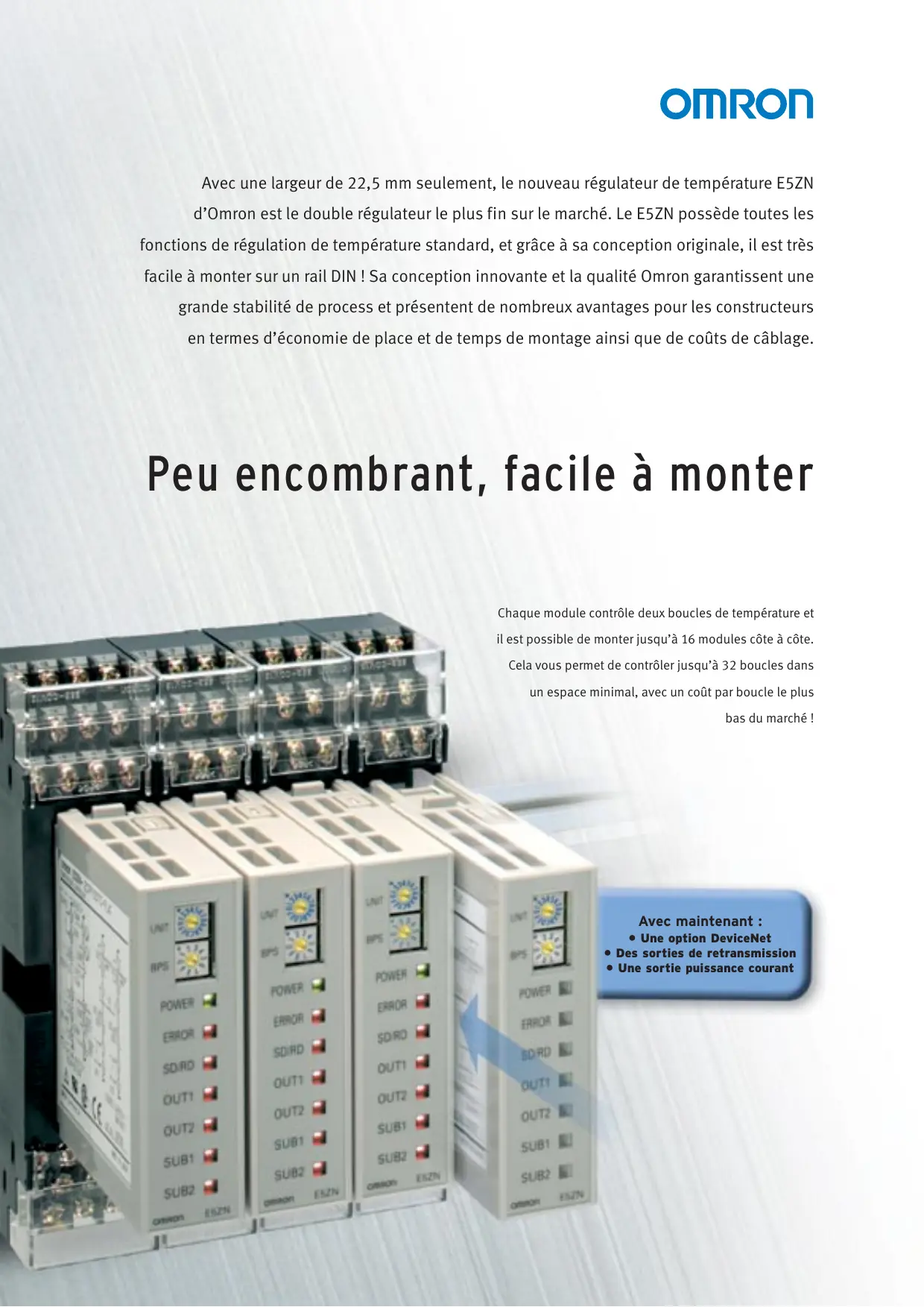 - Deux boucles de régulation dans un module de 22,5 mm Principaux avantages des régulateurs de température Omron E5ZN