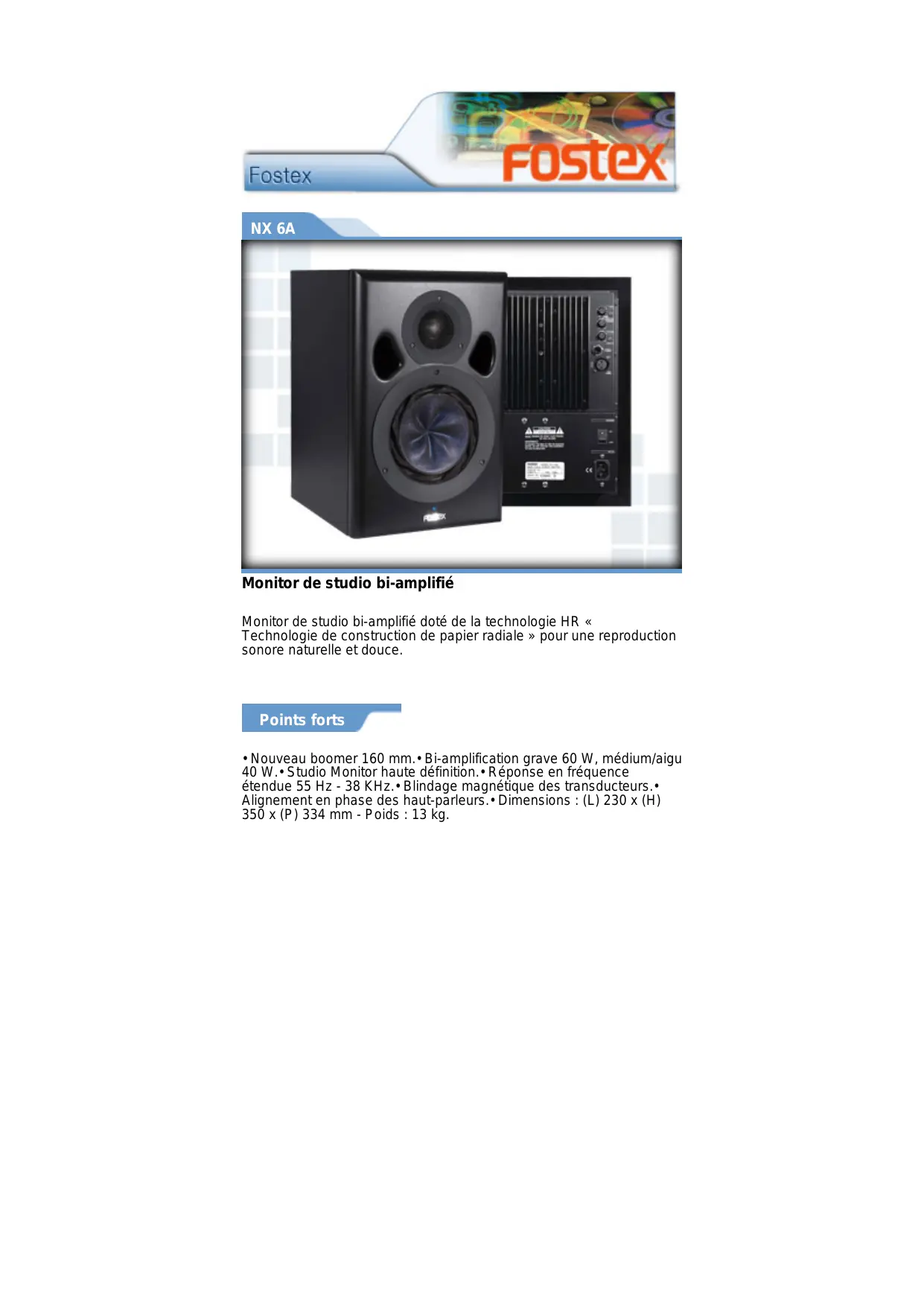 NX 6A - Enceintes de monitoring FOSTEX - Notice d'utilisation et mode d'emploi gratuit