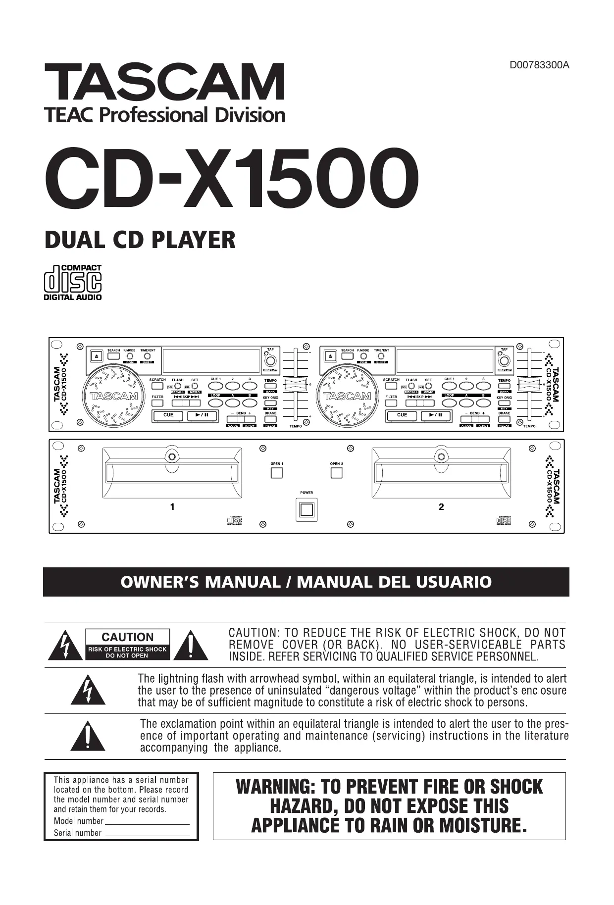 Retrouvez gratuitement la notice de l'appareil CD-X1500 TASCAM au format PDF.