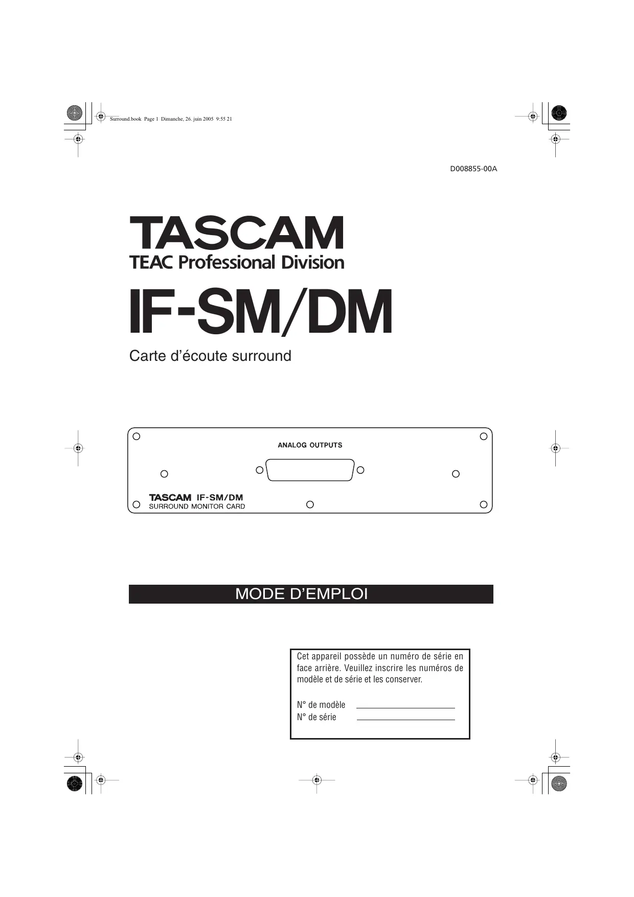 2 IF-SM/DM TASCAM Mode d’emploi