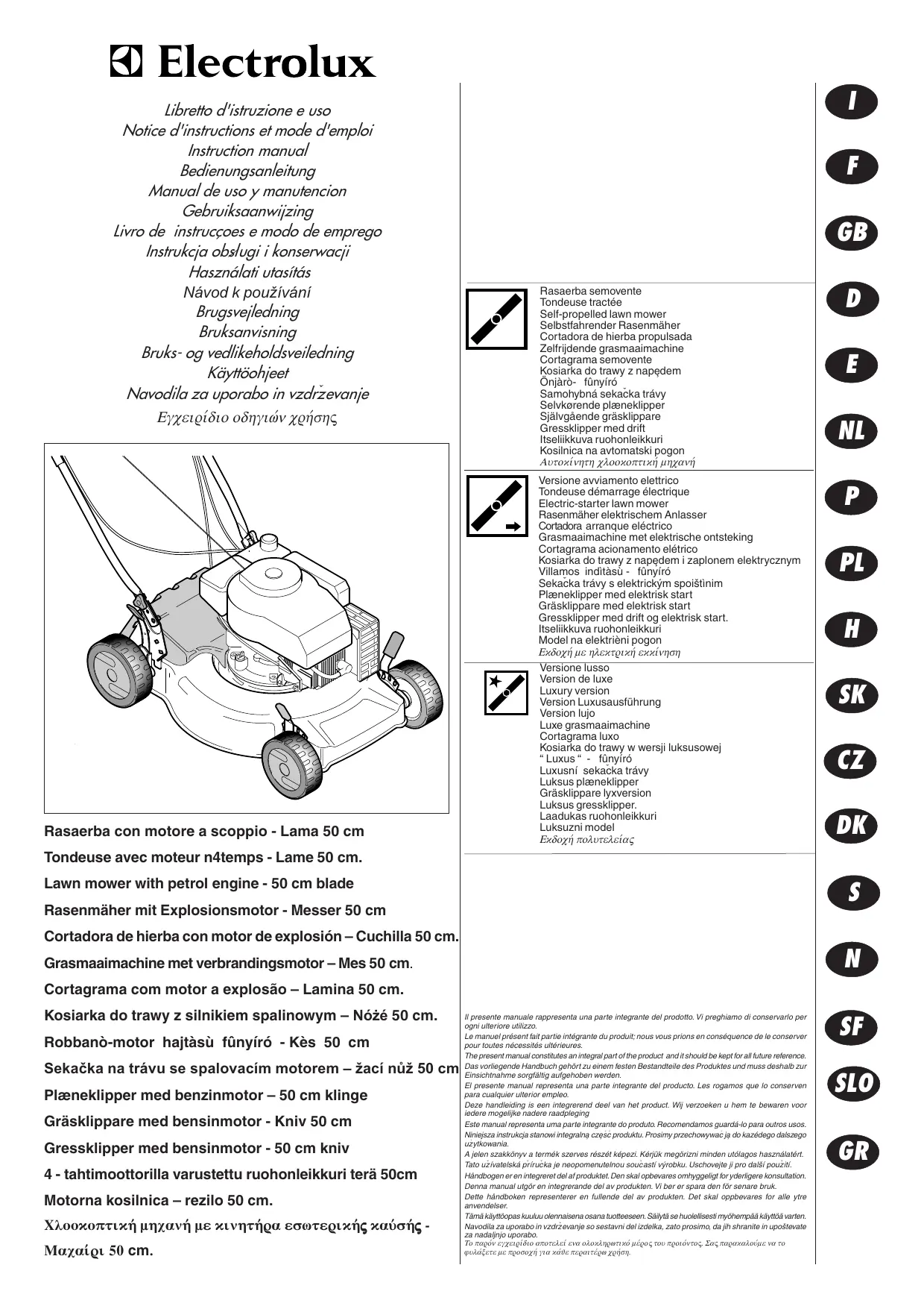 Tondeuse avec moteur n4temps - Lame 50 cm.