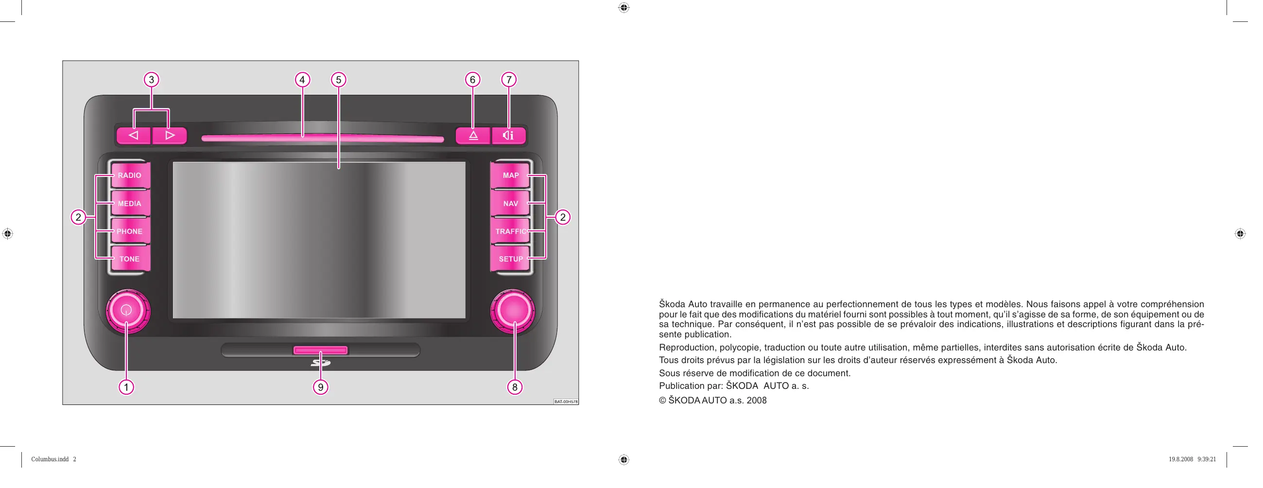 Vous avez opté pour un véhicule Skoda qui est équipé d'un système de radionavigation Columbus (dans ce qui suit, il est seulement désigné sous l'appellation système de navigation) - Nous vous remercions pour votre confiance.