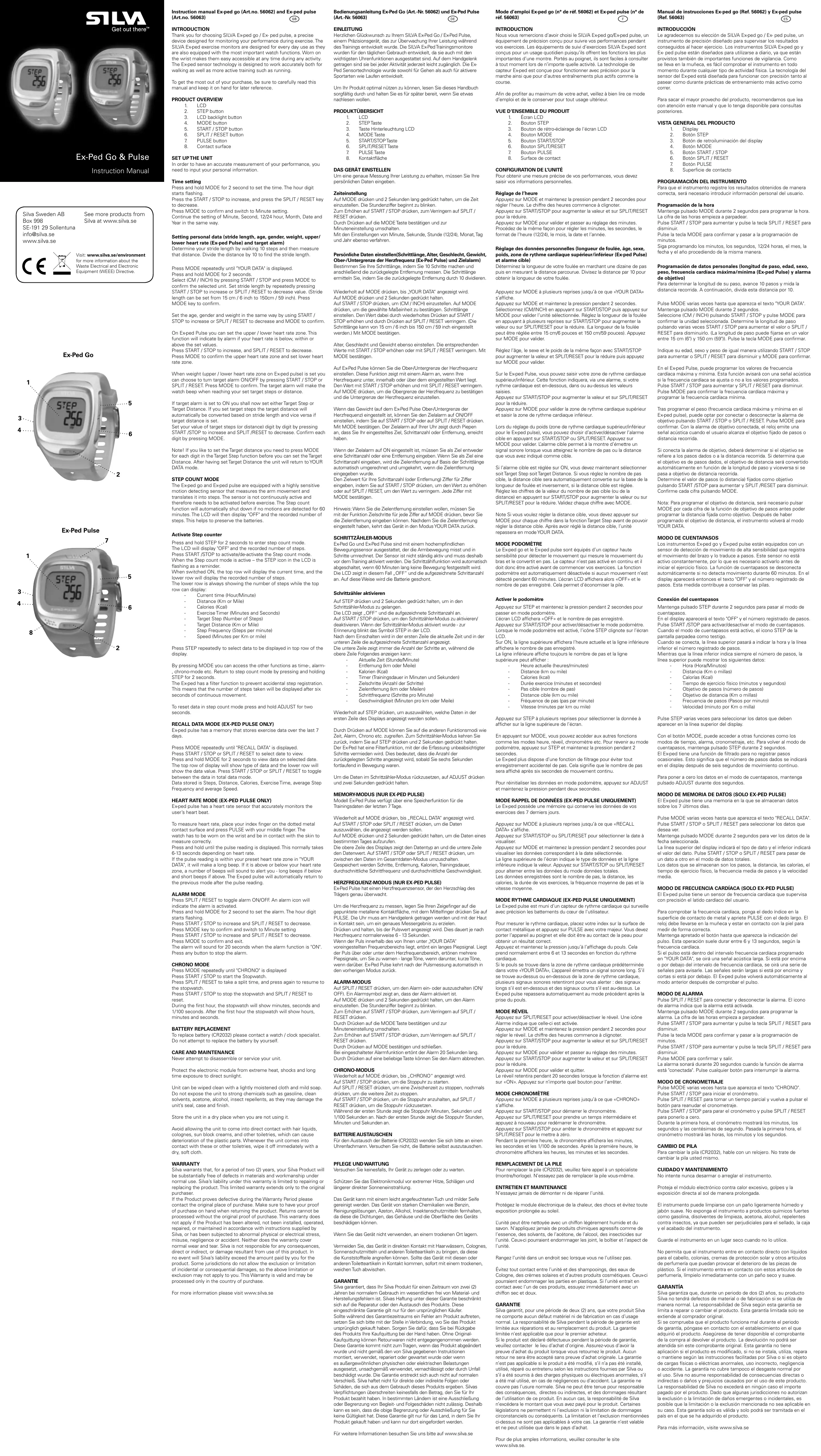 Nous vous remercions d'avoir choisi SILVA Expéded go/Expéded pulse, un équipement de précision conçu pour suivre les performances pendant vos exercices. Les équipements de suivi d'exercices SILVA Expéded sont conçus pour un usage quotidien puisqu'ils offrent les fonctions les plus importantes d'une montre. Portés au poignet, ils sont faciles à consulter à tout moment lors de n'importe quelle activité. La technologie de capteur Expédet est conçue pour fonctionner avec précision pour la
