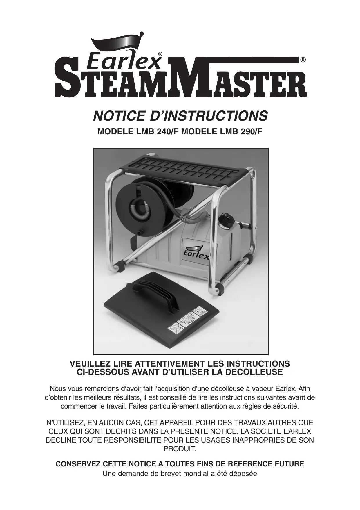 MODE D'EMPLOI STEAMMASTER LMB 240F EARLEX