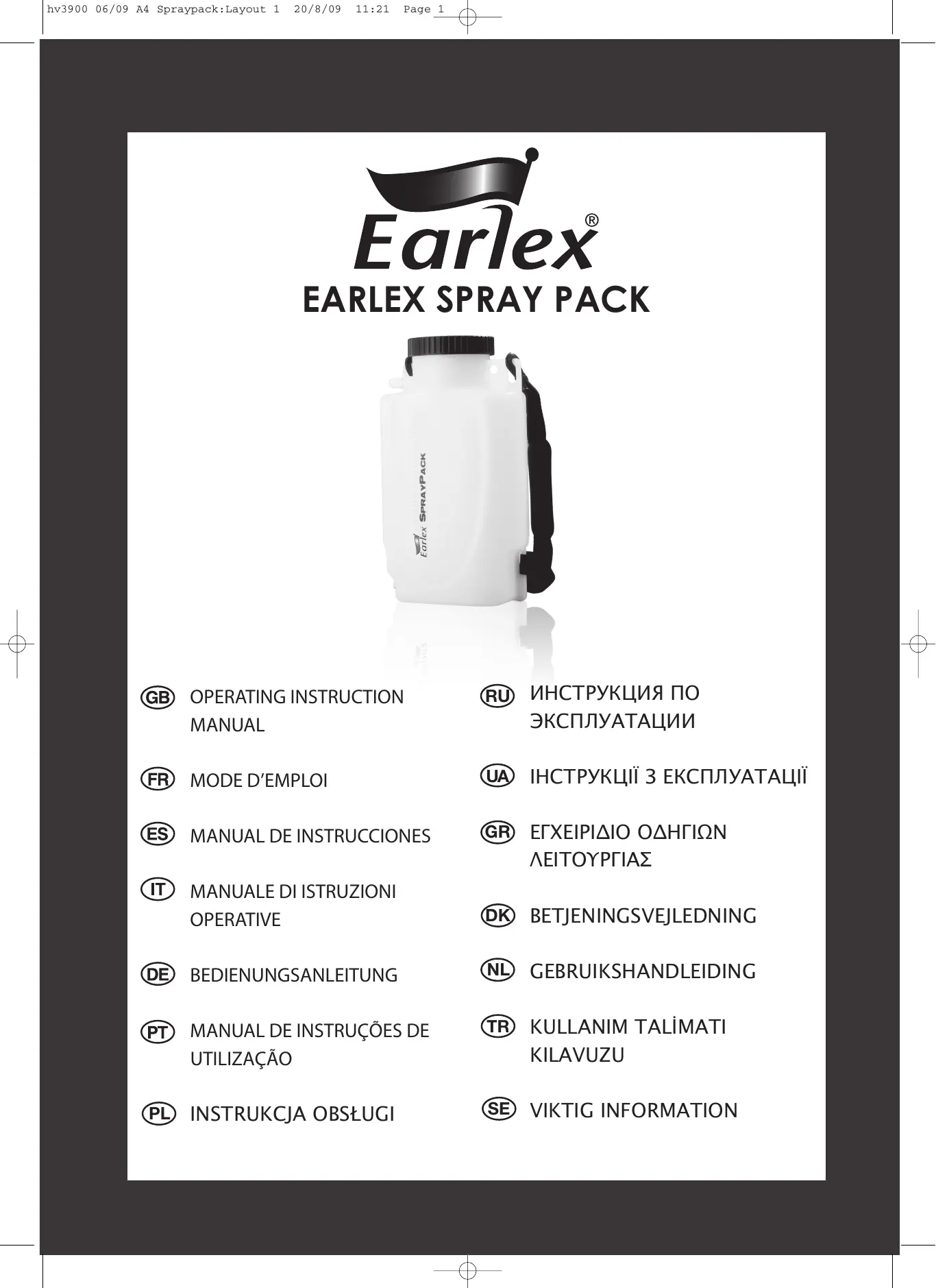 Retrouvez gratuitement la notice de l'appareil SPRAY PACK EARLEX au format PDF.