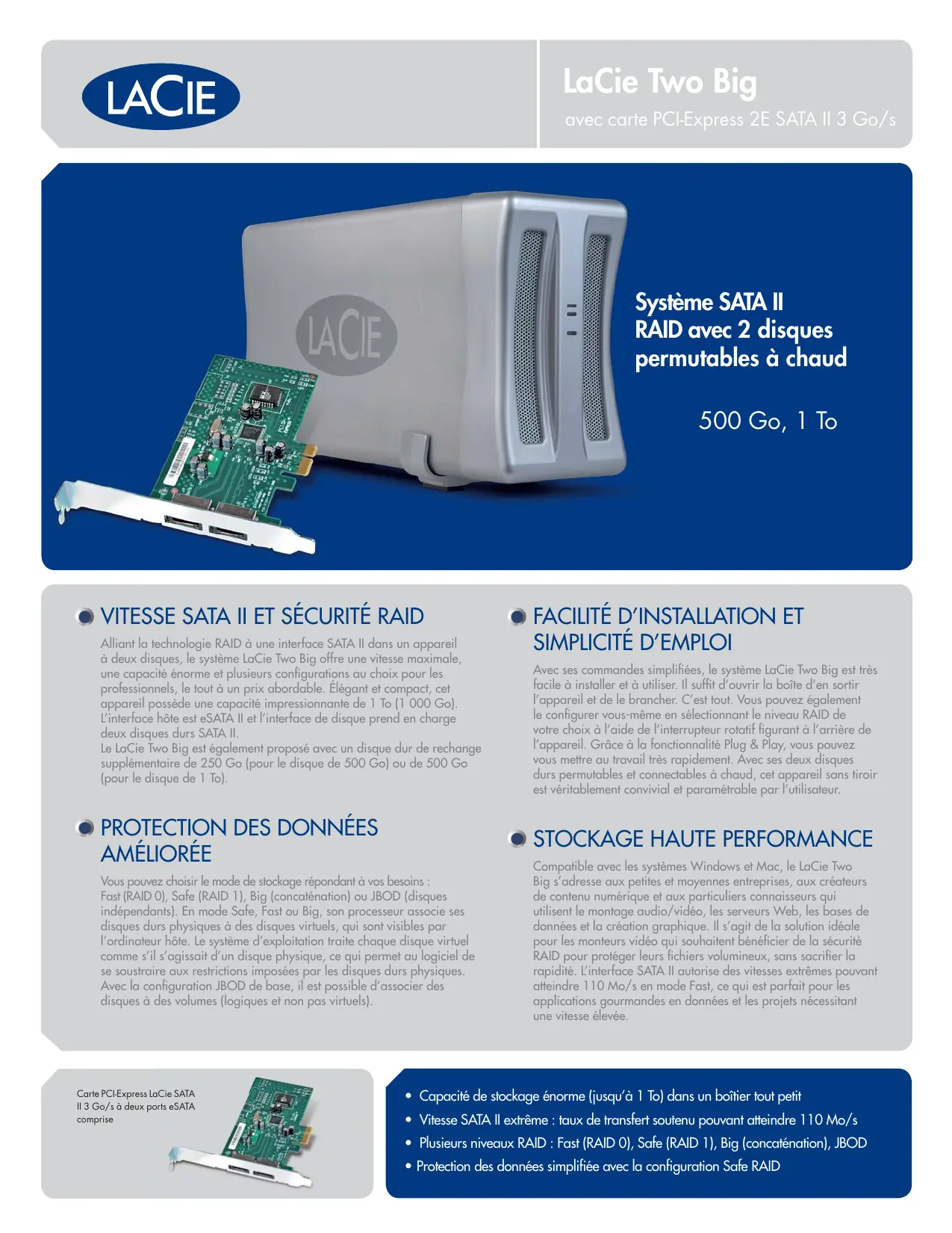 TWO BIG AVEC PCI-E CARTE - Stockage externe LACIE - Notice d'utilisation et mode d'emploi gratuit