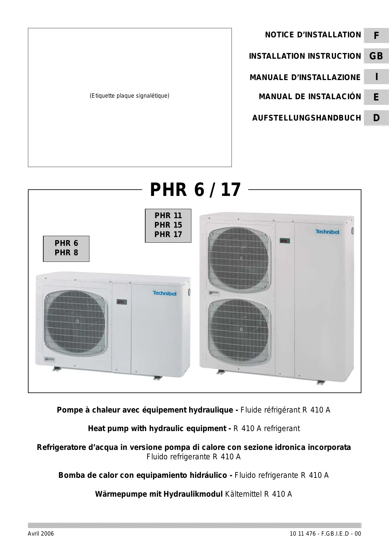 Téléchargez la notice de votre Pompe à chaleur au format PDF gratuitement ! Retrouvez votre notice PHR 11 - TECHNIBEL et reprennez votre appareil électronique en main. Sur cette page sont publiés tous les documents nécessaires à l'utilisation de votre appareil PHR 11 de la marque TECHNIBEL.
