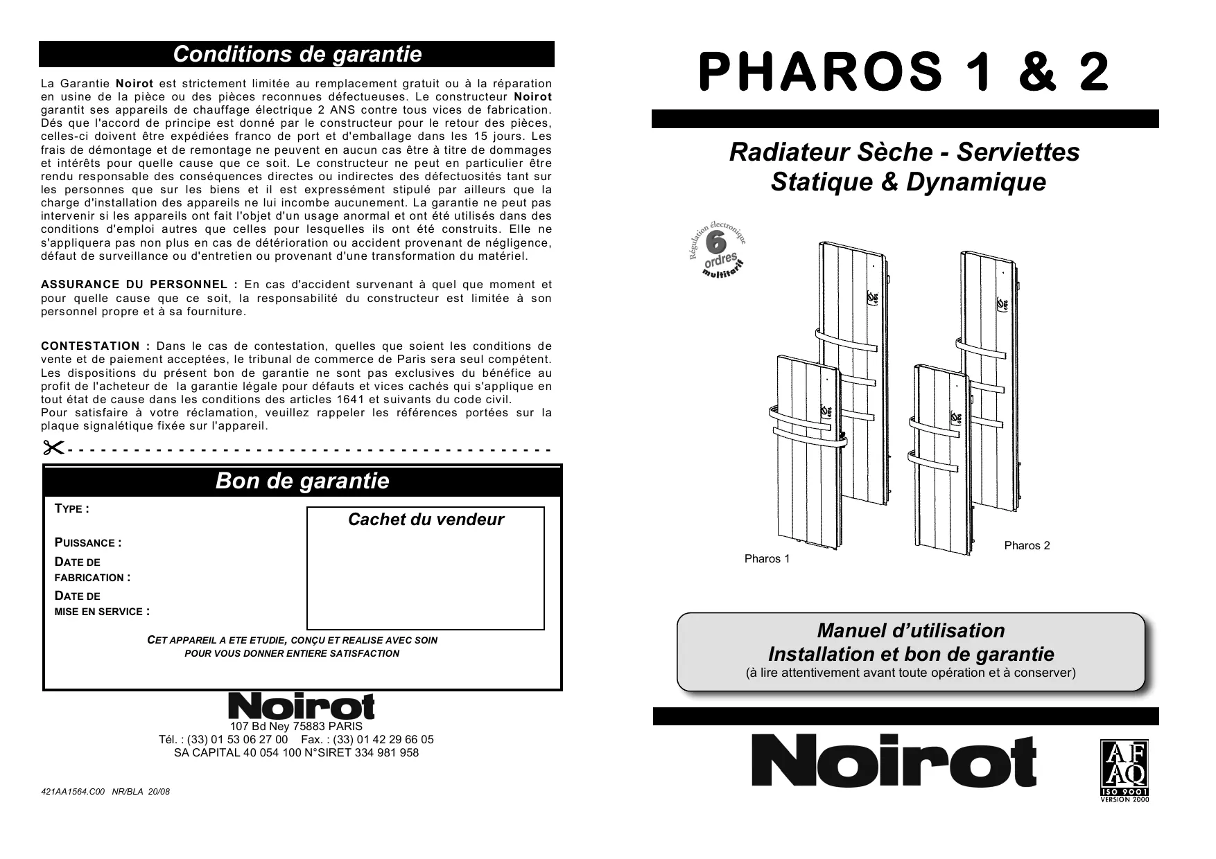 PHAROS 2 - Chauffage électrique NOIROT - Notice d'utilisation et mode d'emploi gratuit
