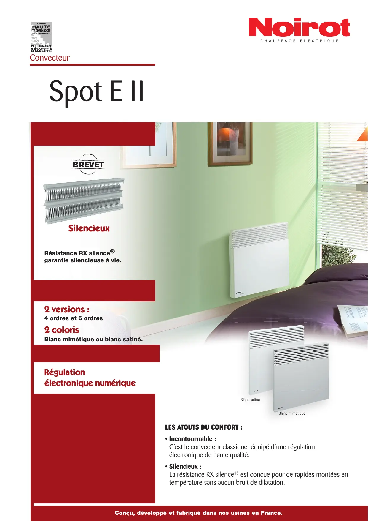 - Incontournable : C'est le convecteur classique, équipé d’une régulation électronique de haute qualité. + Silencieux : La résistance RX silence® est conçue pour de rapides montées en température sans aucun bruit de dilatation. Conçu, développé et fabriqué dans nos usines en France.