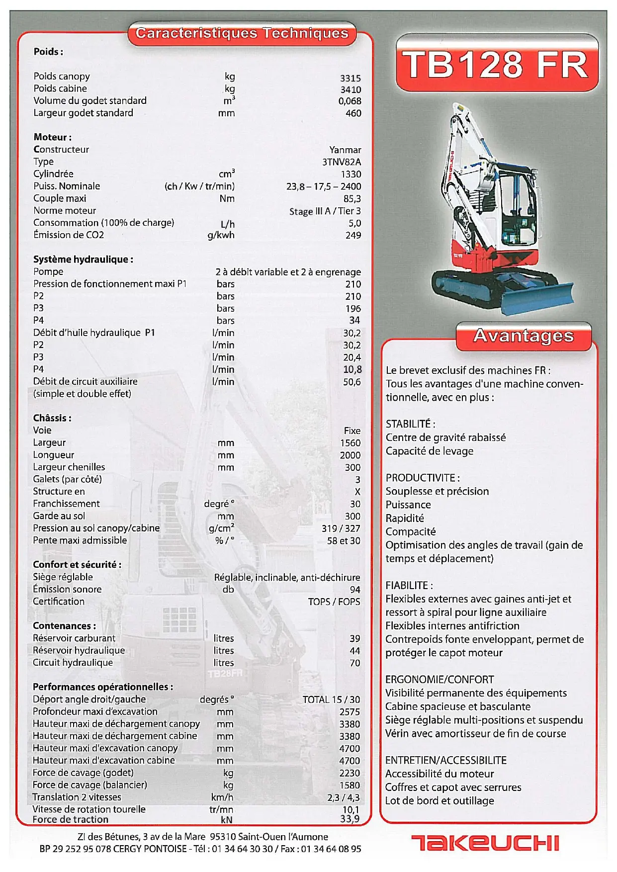 TB 128 FR - Mini pelle TAKEUCHI - Notice d'utilisation et mode d'emploi gratuit
