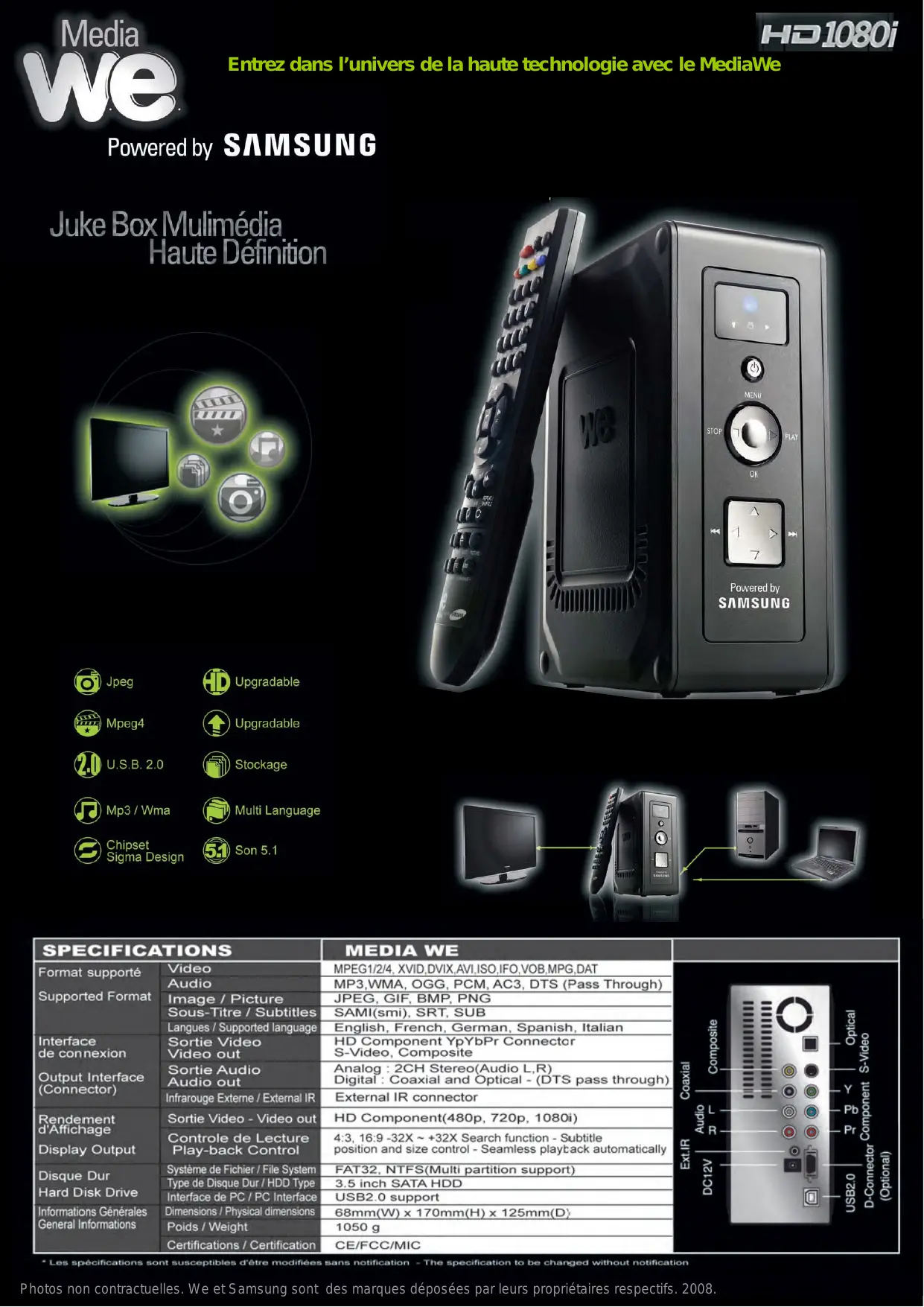 Entrez dans l’univers de la haute technologie avec le MediaWe Photos non contractuelles. We et Samsung sont des marques déposées par leurs propriétaires respectifs. 2008.