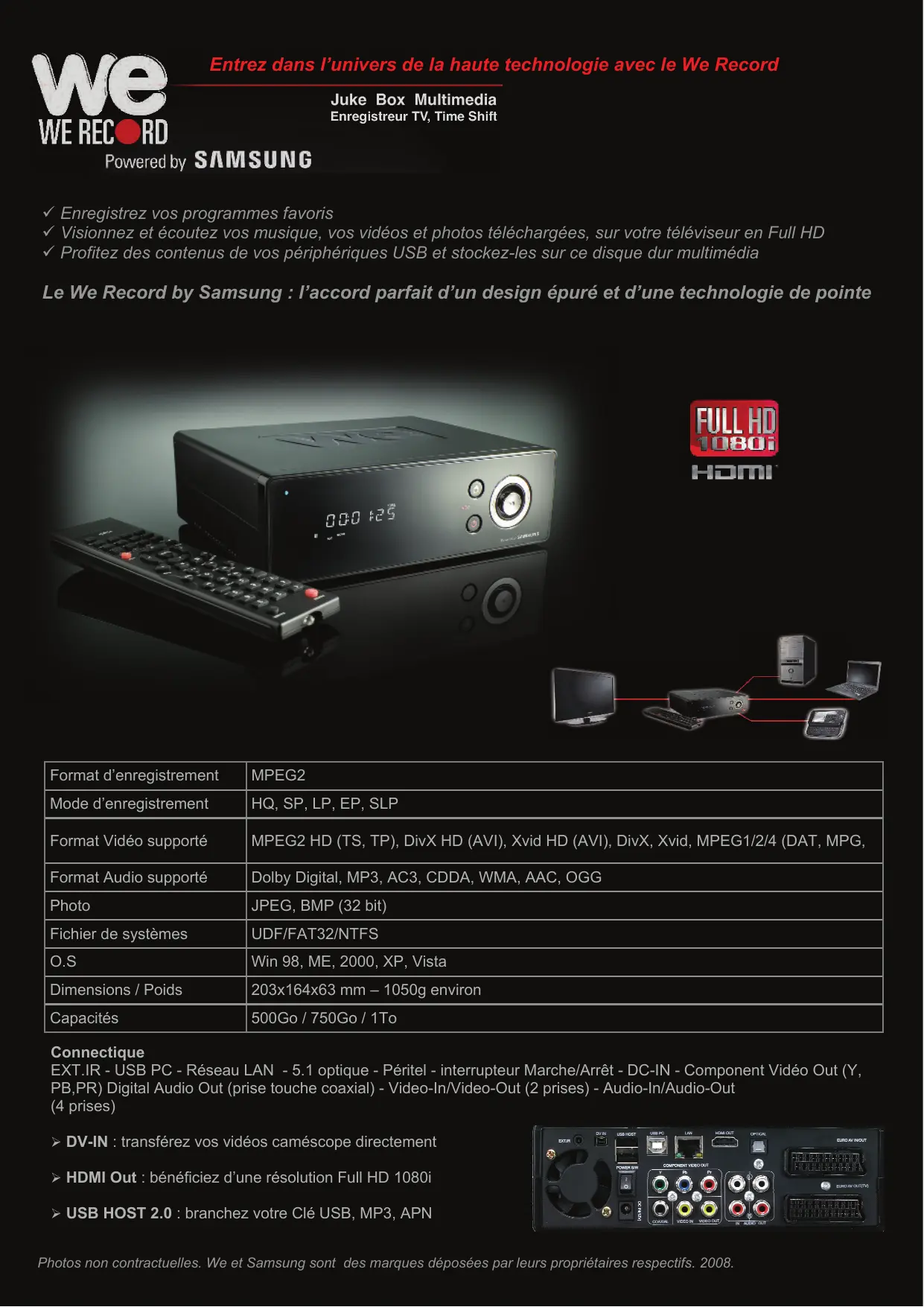 9 Visionnez et écoutez vos musique, vos vidéos et photos téléchargées, sur votre téléviseur en Full HD 9 Profitez des contenus de vos périphériques USB et stockez-les sur ce disque dur multimédia