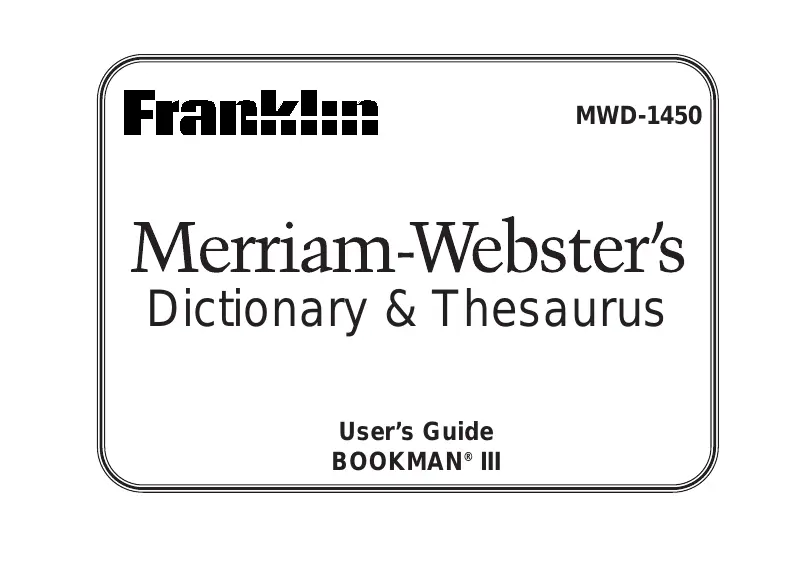 MWD-1450 - Dictionnaire électronique FRANKLIN - Notice d'utilisation et mode d'emploi gratuit