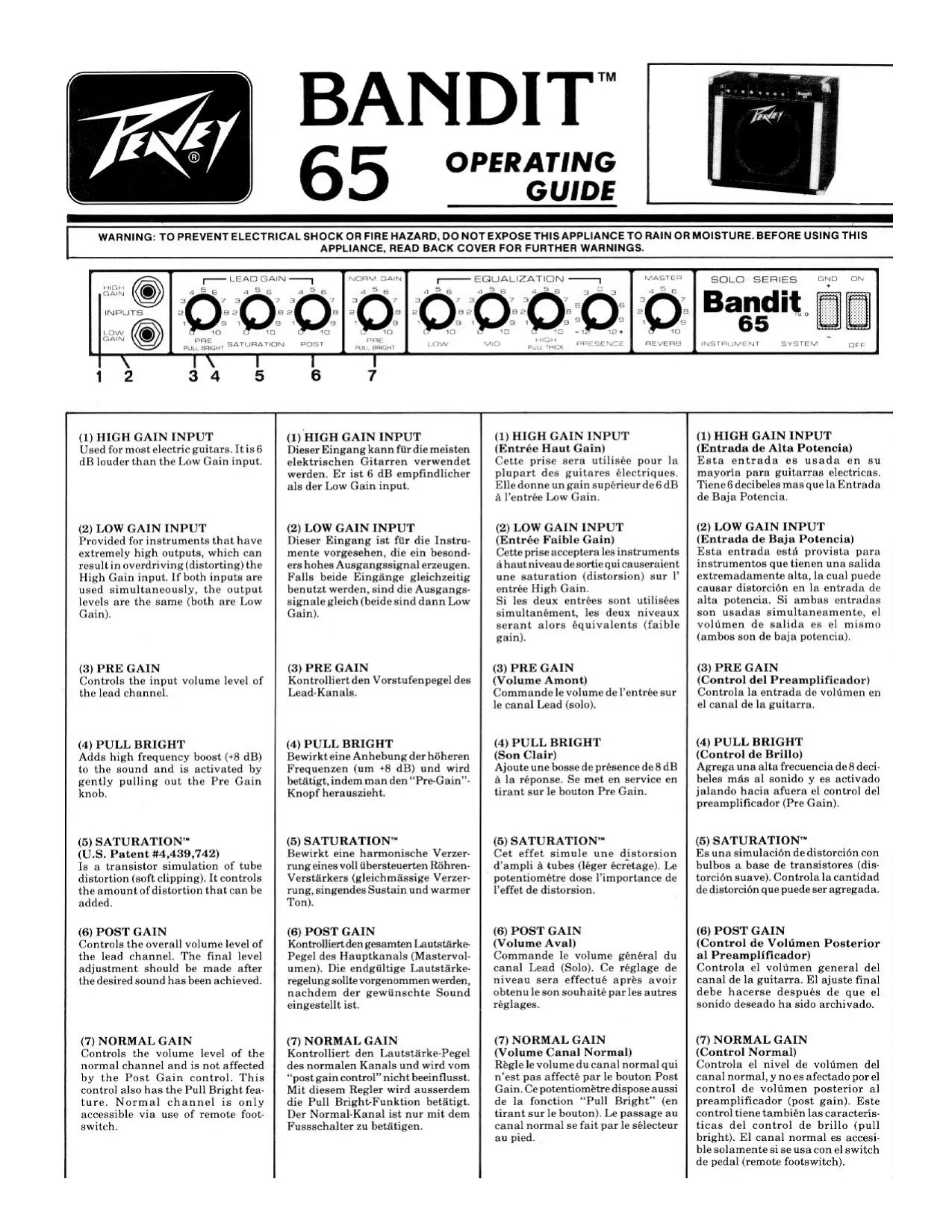 Retrouvez gratuitement la notice de l'appareil BANDIT 65 PEAVEY au format PDF.