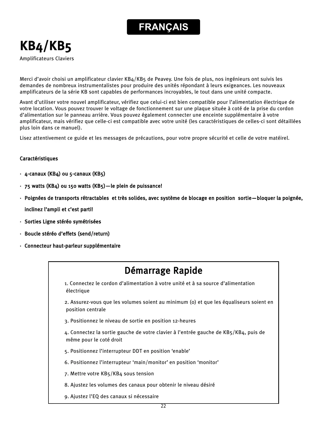 MODE D'EMPLOI KB4 PEAVEY