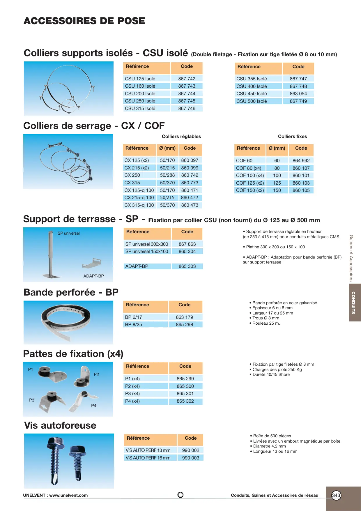 ACCESSOIRES DE POSE ET DE RÉSEAUX - Accessoires de pose et de réseaux UNELVENT - Notice d'utilisation et mode d'emploi gratuit