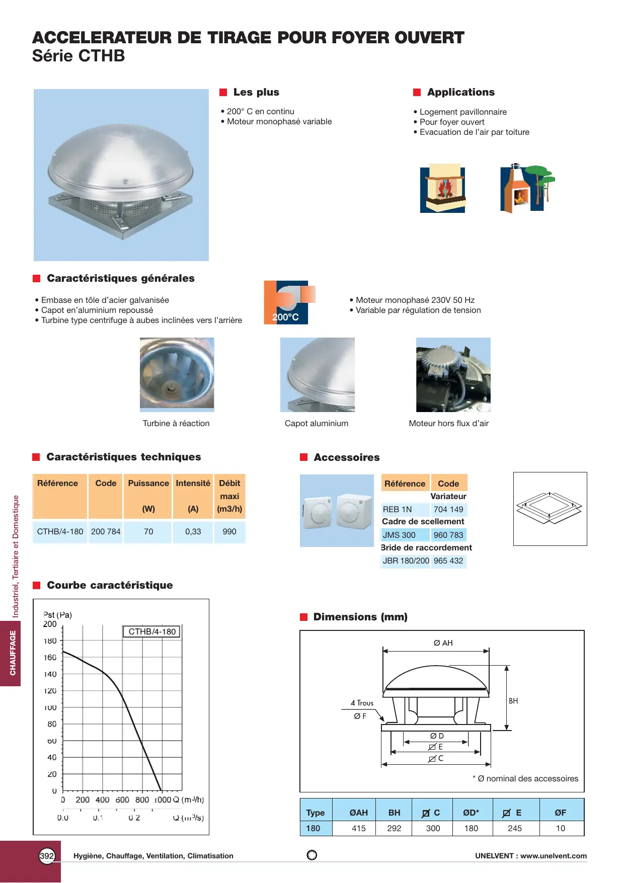 ACCÉLÉRATEUR DE TIRAGE - CTHB - Ventilateur d'extraction UNELVENT - Notice d'utilisation et mode d'emploi gratuit