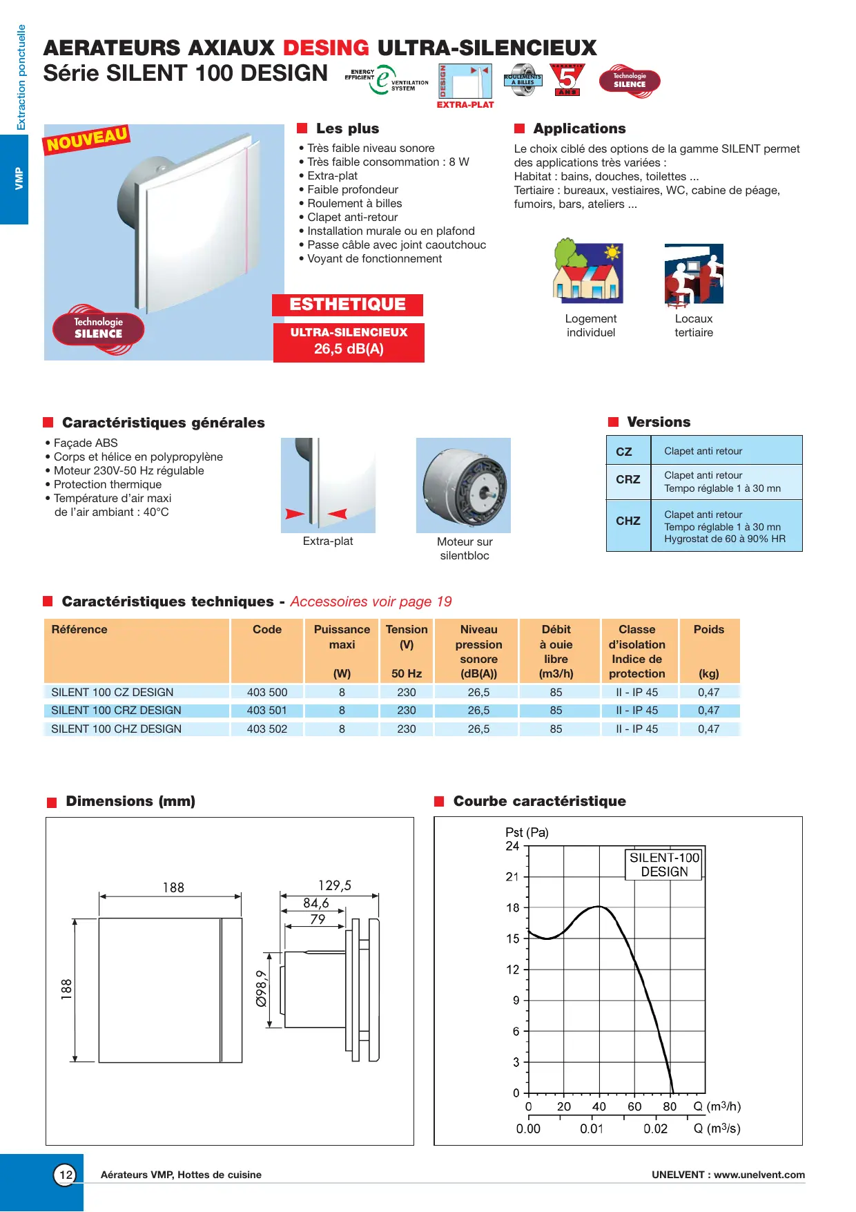 Retrouvez gratuitement la notice de l'appareil AÉRATEURS VMP SILENT DESIGN UNELVENT au format PDF.