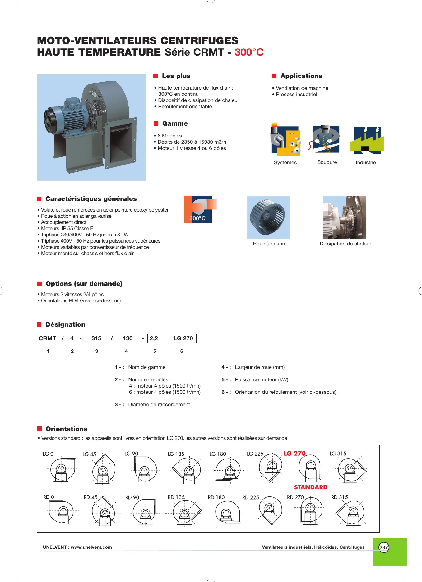 CRMT - HAUTE TEMPÉRATURE 300°C - Ventilateur industriel UNELVENT - Notice d'utilisation et mode d'emploi gratuit