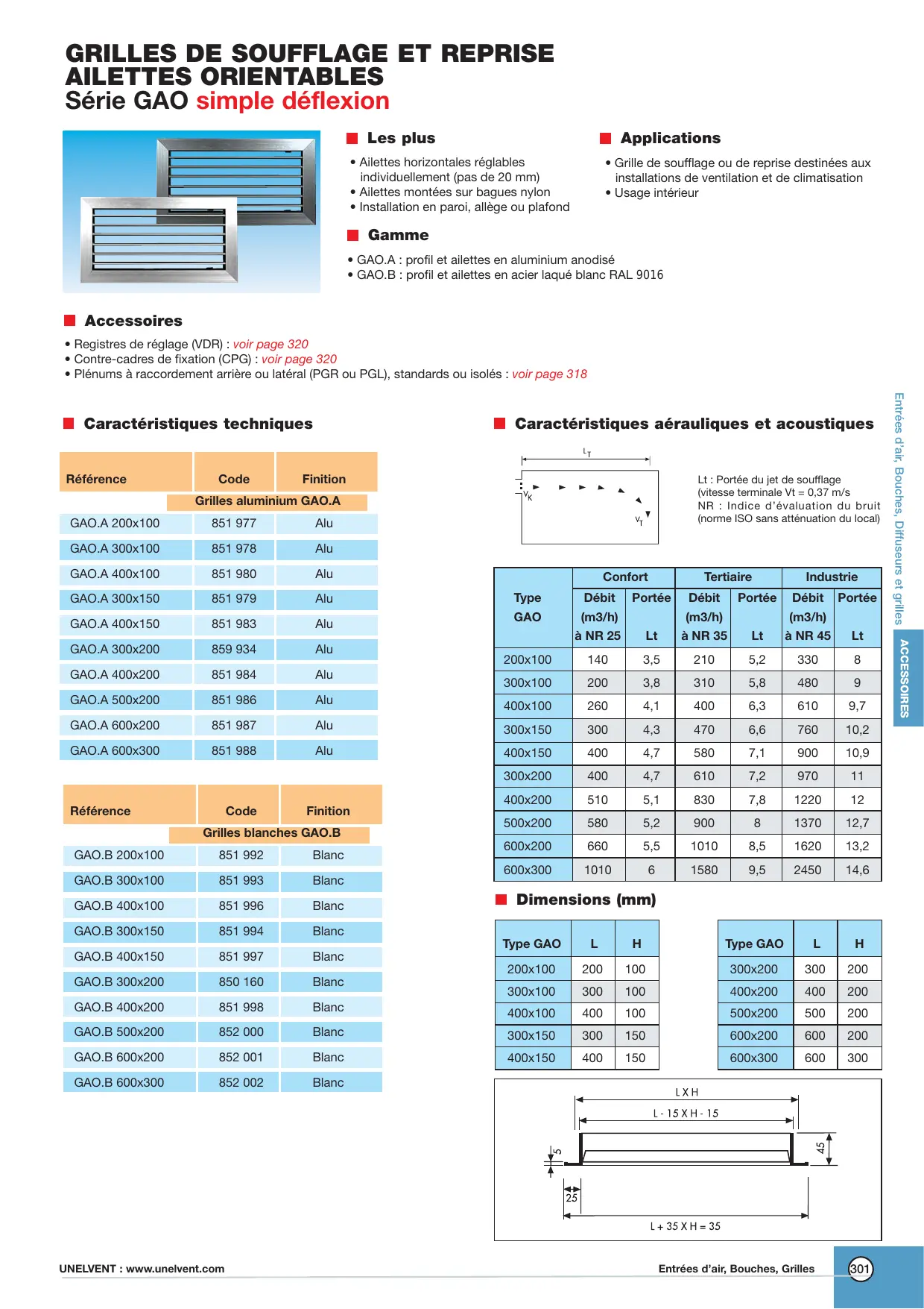 GAO-D DOUBLE DÉFLEXION - Grille de ventilation UNELVENT - Notice d'utilisation et mode d'emploi gratuit