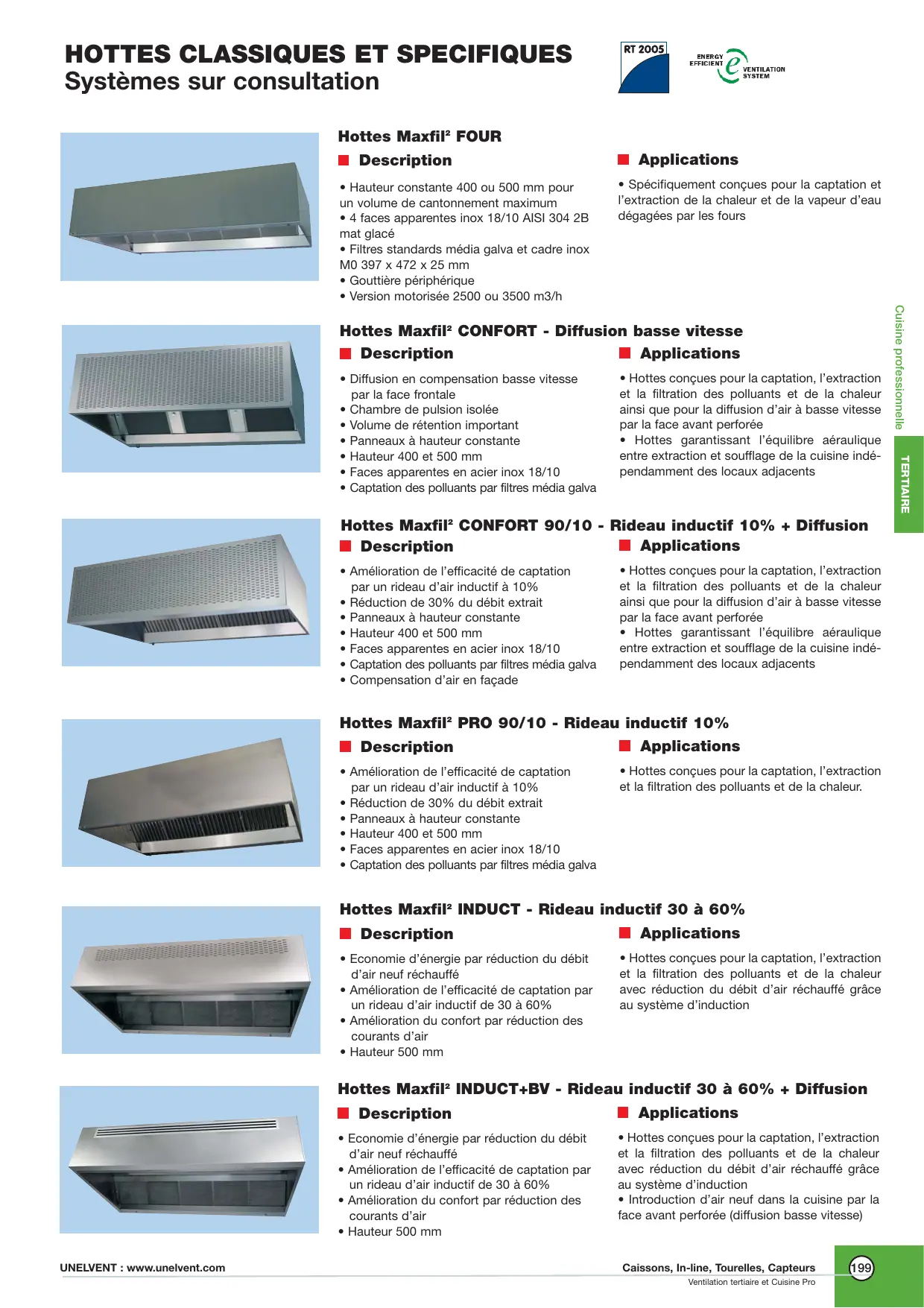 | Applications | Captation, extraction et filtration des polluants et vapeurs de cuisson |