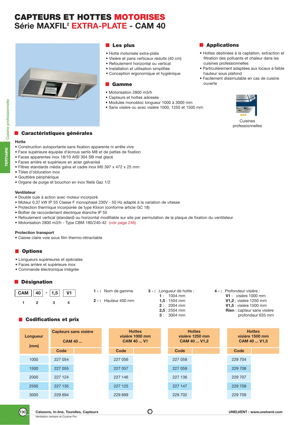 MAXFIL EXTRA-PLATE CAM 40 - Hotte aspirante UNELVENT - Notice d'utilisation et mode d'emploi gratuit