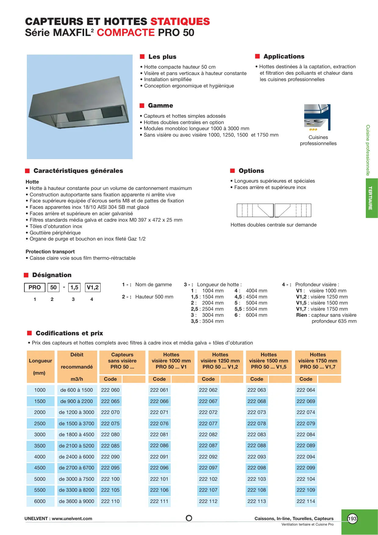 MAXFIL STANDARD PRO 50 - Hotte aspirante UNELVENT - Notice d'utilisation et mode d'emploi gratuit