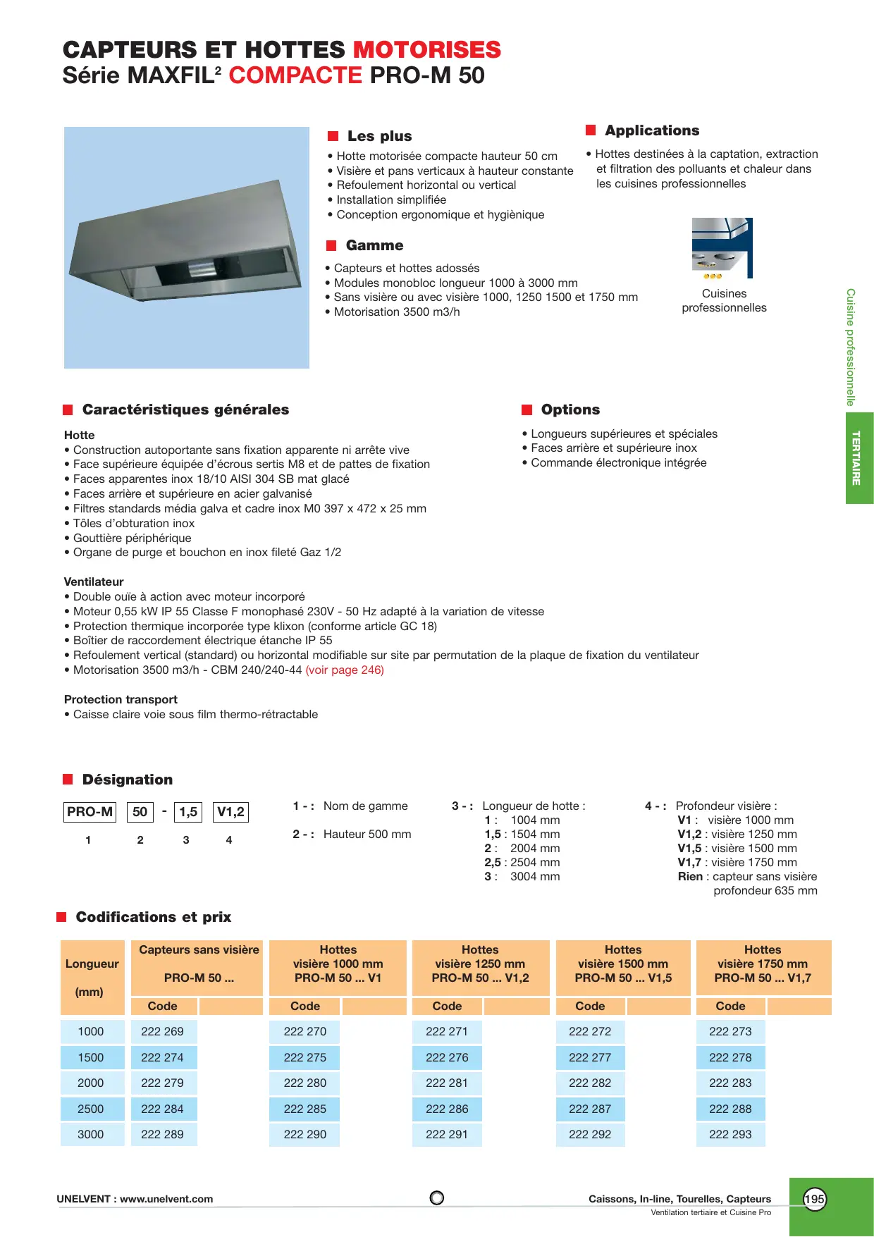 3773,79 UNELVENT : www.unelvent.com Caissons, In-line, Tourelles, Capteurs Ventilation tertiaire et Cuisine Pro