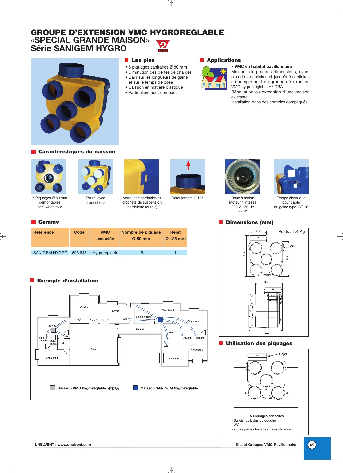 SANIGEM HYGRO - Ventilation Mécanique Contrôlée (VMC) UNELVENT - Notice d'utilisation et mode d'emploi gratuit