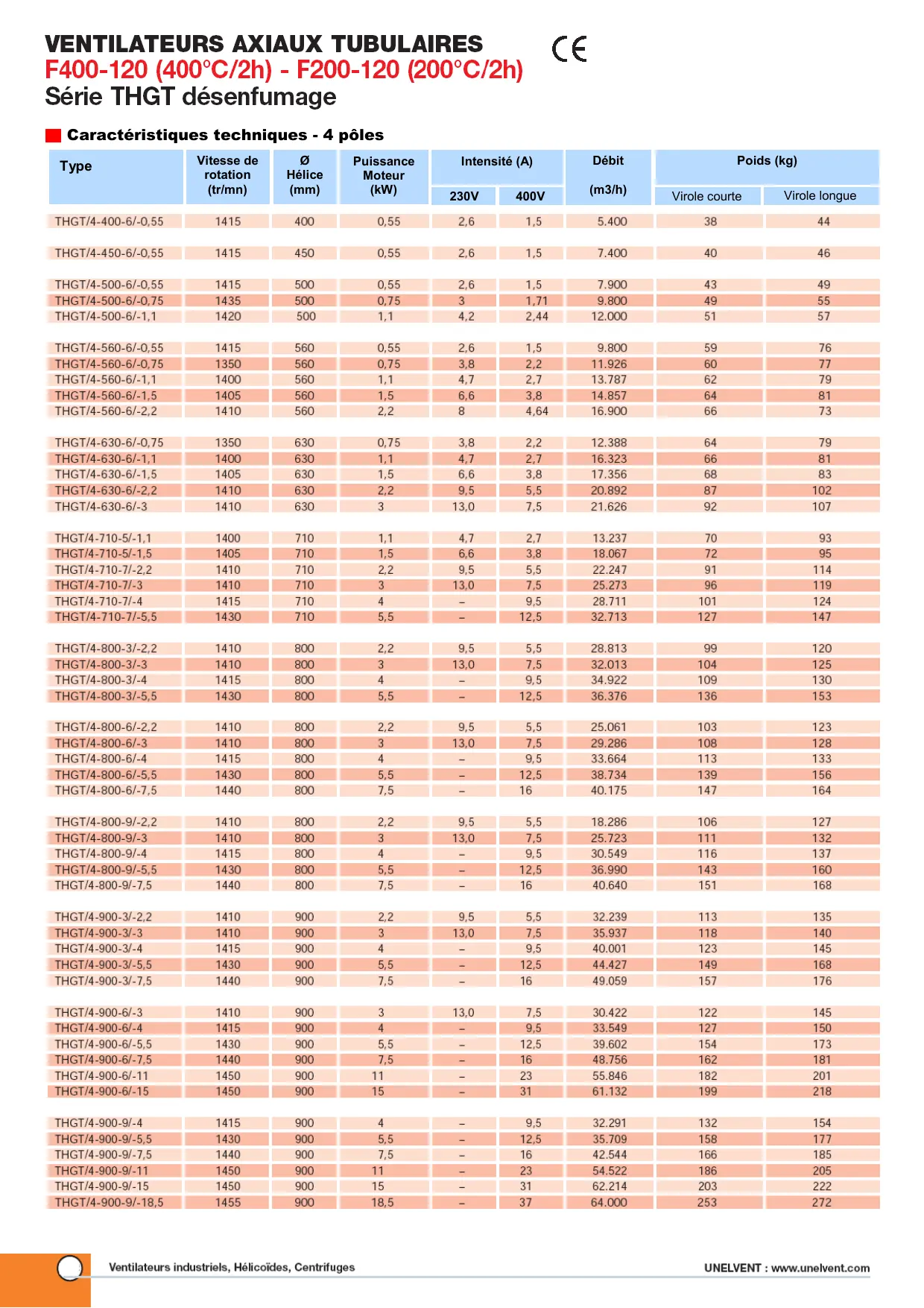 Agréé F400-120 PV n° 0370-CPD-348. Agréé F200-120 PV n° 0370-CPD-349. - Virole et support moteur en tôle d'acier galvanisé à chaud. - Option « virole longue » sur demande. - Hélice 3, 5, 6, 7 ou 9 pales en aluminium à angle variable à l'arrêt. - Moyeu en tôle d'acier protégé par cataphorèse. - Moteur triphasé 230/400 V jusqu'à 3 kW. - Moteur triphasé 400 V au-dessus de 3 kW. - Moteur 2 vitesses triphasées 400 V (bobinage Dahlander). - IP 55, Classe H (F400-120) ou Classe F (F200-120).