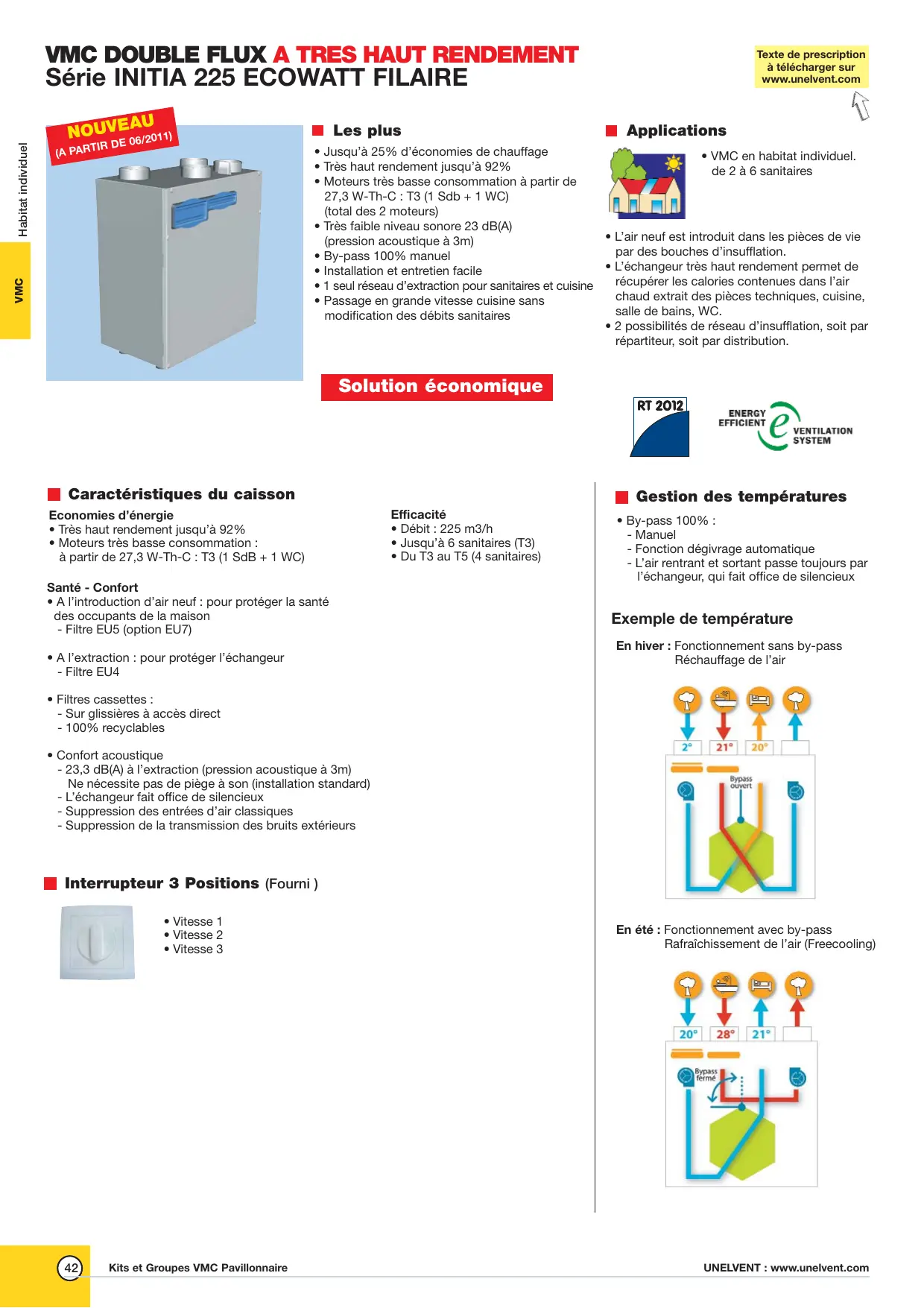 Retrouvez gratuitement la notice de l'appareil VMC DOUBLE FLUX INITIA 225 ECOWATT FILAIRE UNELVENT au format PDF.