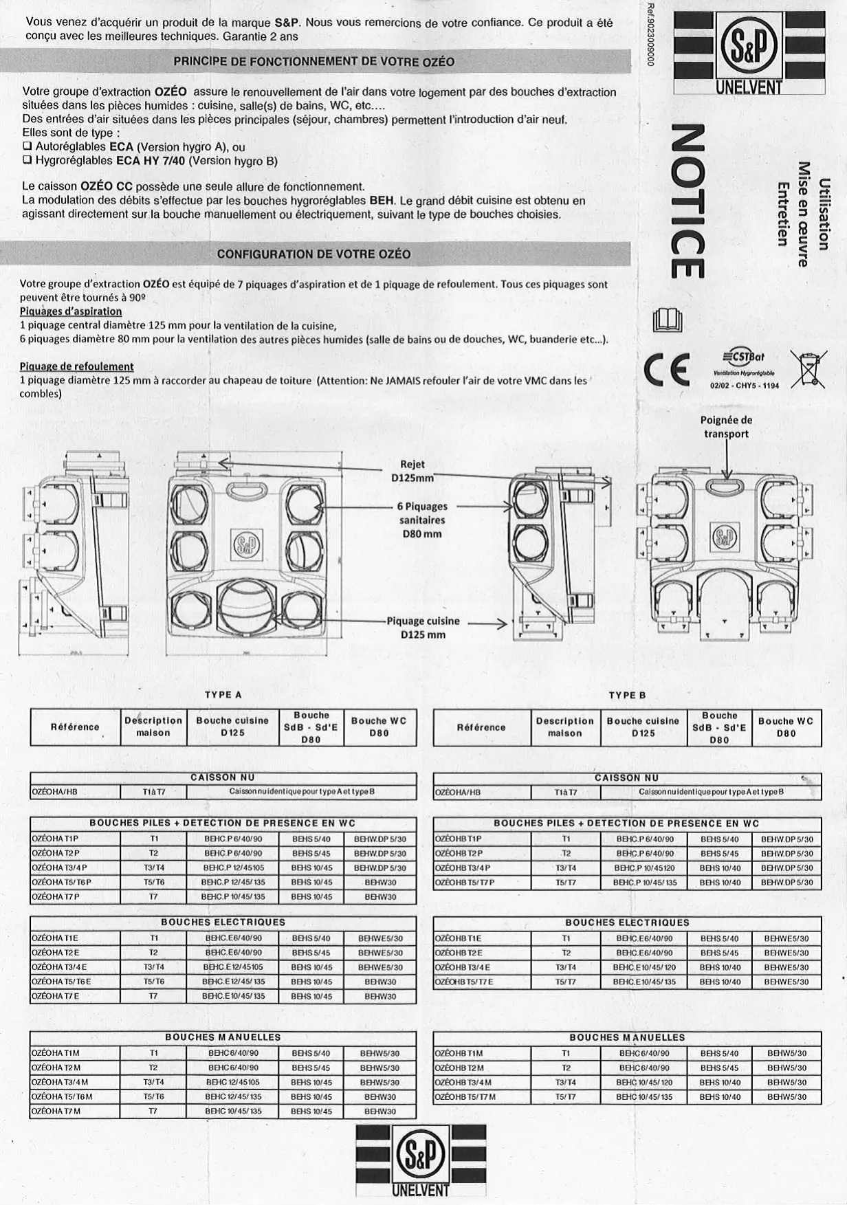 VMC HYGRO A OZEO HA - VMC (Ventilation Mécanique Contrôlée) UNELVENT - Notice d'utilisation et mode d'emploi gratuit