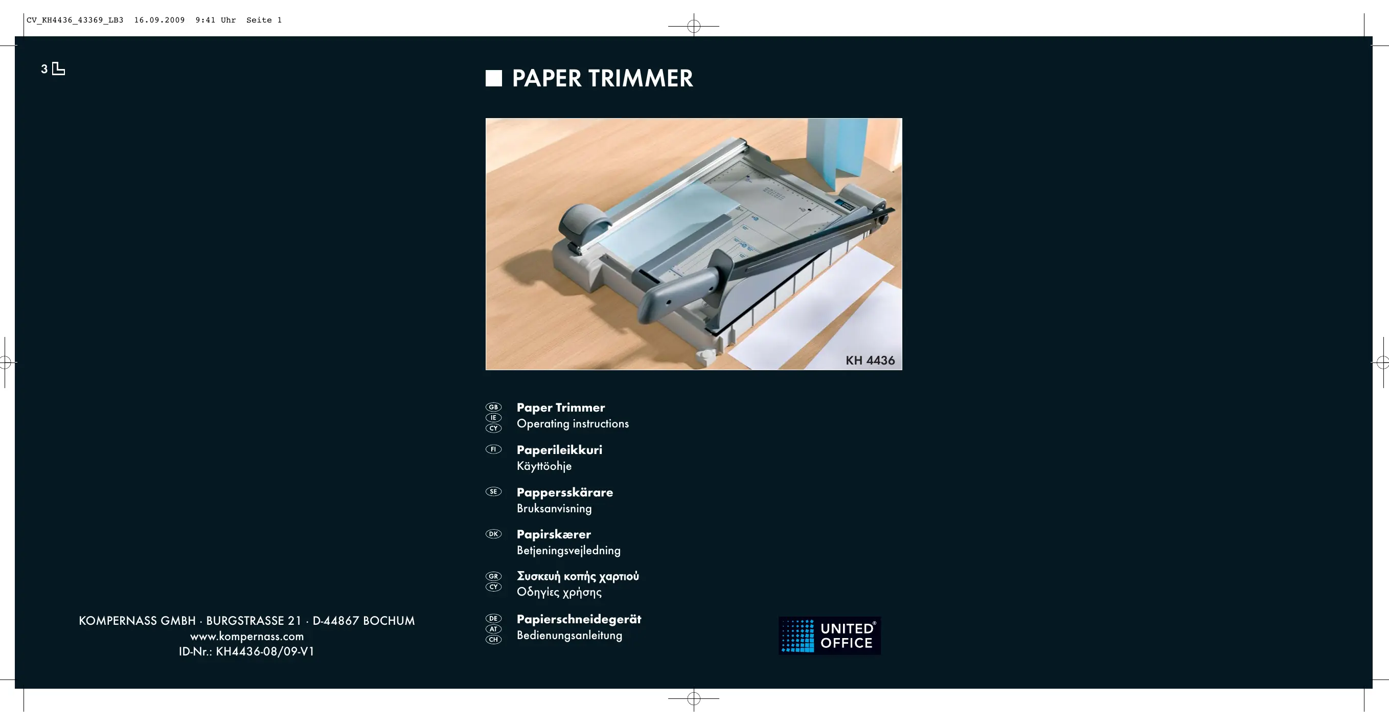 Retrouvez gratuitement la notice de l'appareil KH 4436 PAPER TRIMMER UNITED OFFICE au format PDF.