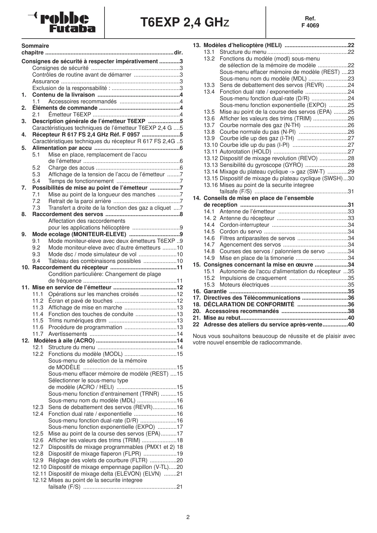 T6EXP 2,4 GHz Nom du modèle : .................................................... Ref. F 4069 N° du modèle : ................