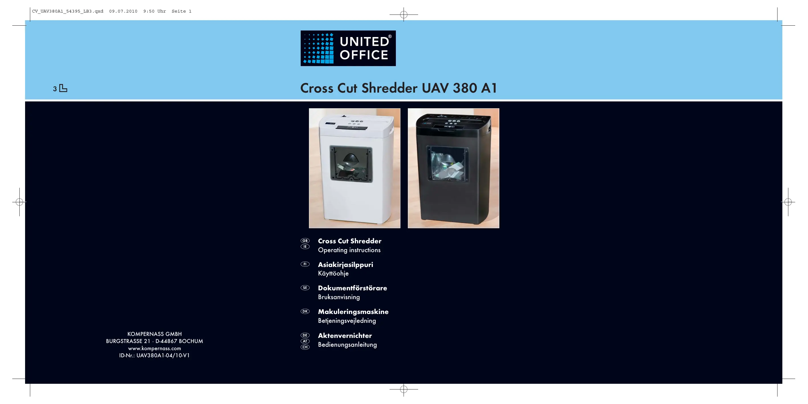 UAV 380 A1 CROSS CUT SHREDDER - Destructeur de documents UNITED OFFICE - Notice d'utilisation et mode d'emploi gratuit