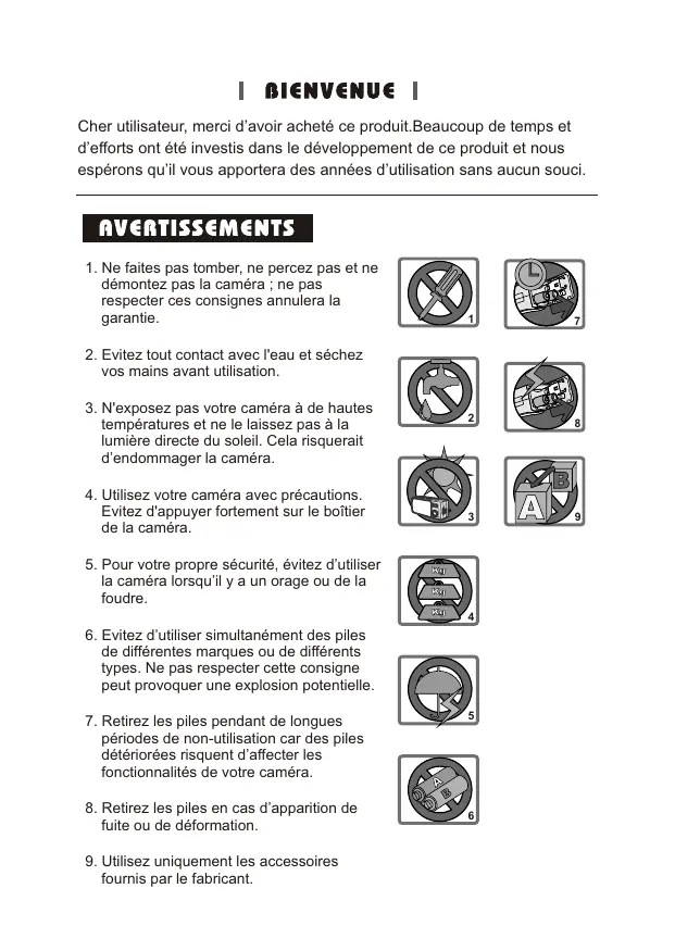 périodes de non-utilisation car des piles détériorées risquent d’affecter les fonctionnalités de votre caméra.