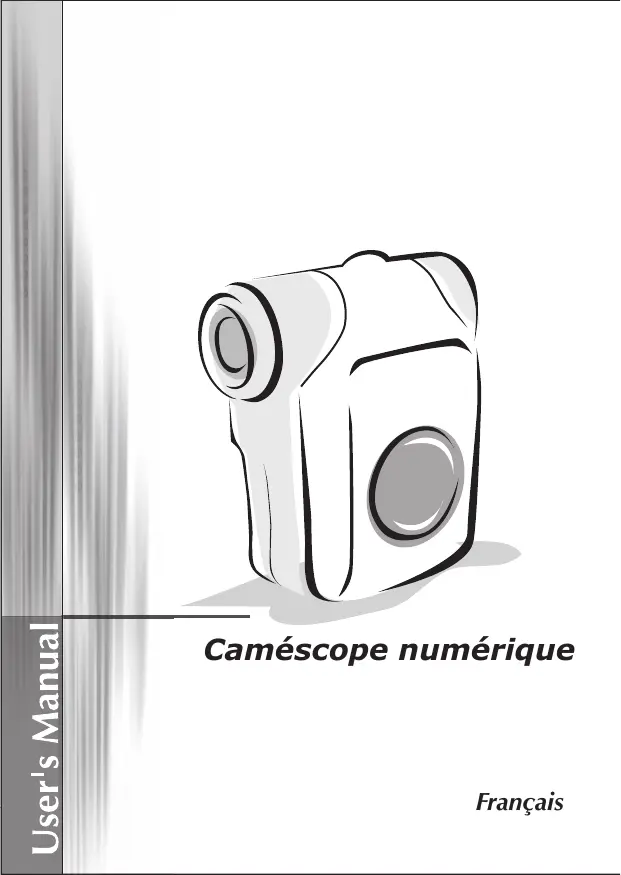 Annexe: A Réglage de fréquence Pays Angleterre Allemagne France Italie Espagne Réglage 50Hz 50Hz 50Hz 50Hz 50Hz 50Hz Pays Portugal Etats-Unis Taiwan Chine Japon Corée Réglage 50Hz 60Hz 60Hz 50Hz 50/60Hz 60Hz Russie Note: Le réglage de fréquence est basé sur le standard de fréquence de votre réseau électrique local. Messages système Message Enregistrement en cours Déverrouiller la carte SD SVP Pas de fichier Si vous insérez une carte SD et que cette carte est “Protégée”, ce message s’affiche lorsque le caméscope essaye d’écrire des données sur la carte. Lorsque le caméscope est réglé sur le mode Lecture sans qu’il y ait de fichier existant à lire, un message s’affiche. Remplacer la batterie SVP L’autonomie de la batterie du caméscope est faible. Vous devriez remplacer la batterie par une nouvelle immédiatement. Mémoire pleine La mémoire de stockage est pleine et ne peut pas stocker davantage de fichiers. Veuillez remplacer la carte SD/MMC ou supprimer certains fichiers pour libérer de l’espace mémoire. Erreur carte Erreur mémoire Le flash se recharge La carte insérée n’est pas compatible avec le caméscope. Veuillez remplacer la carte ou essayer de la formater. Le caméscope n’arrive pas à accéder à la mémoire interne. Veuillez formater le support pour résoudre le problème. Le flash est en train de se recharger. Erreur de format fichier Le fichier en cours de lecture n’est pas compatible avec le caméscope. Suppression en cours Le caméscope est en train d’effectuer une suppression. Formatage en cours Réglage