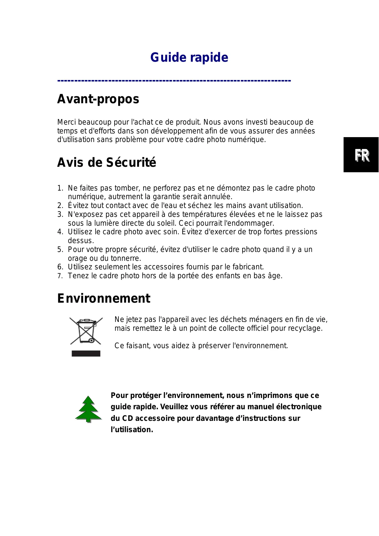 Pour protéger l’environnement, nous n’imprimons que ce guide rapide. Veuillez vous référer au manuel électronique du CD accessoire pour davantage d’instructions sur l’utilisation.