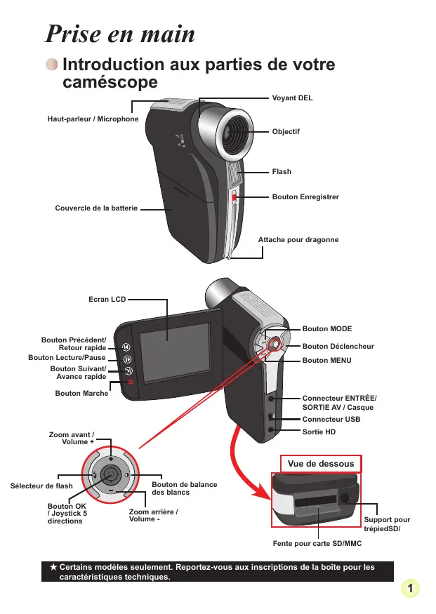 | Fonctions principales | Enregistrement vidéo, prise de photos, lecture multimédia |