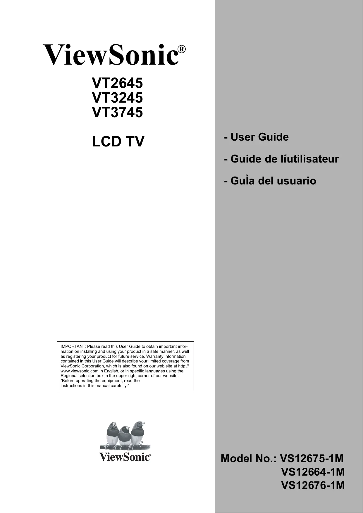 Retrouvez gratuitement la notice de l'appareil VT3745 VIEWSONIC au format PDF.