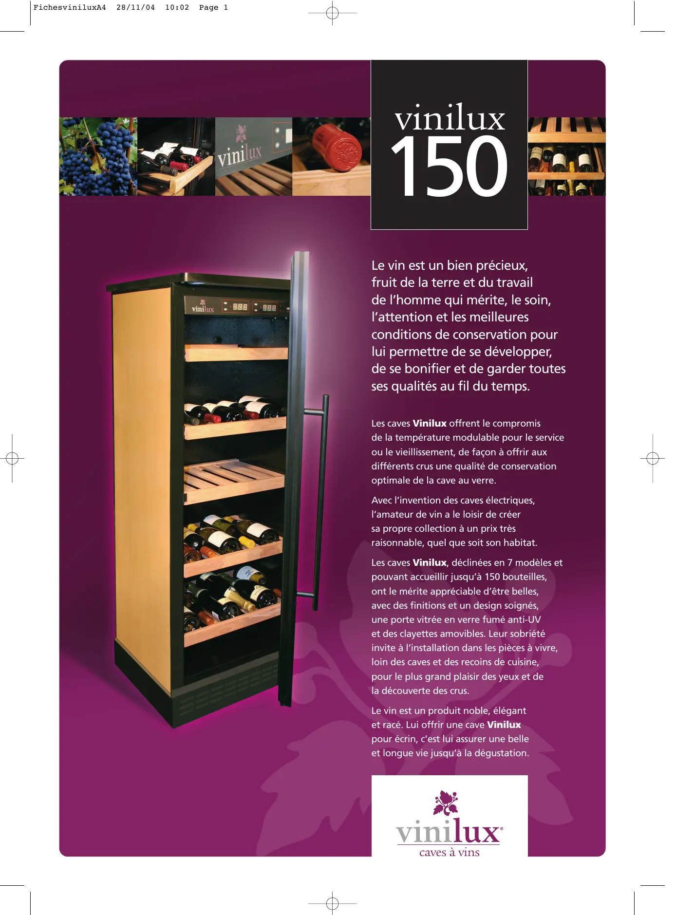 150 - Cave à vin VINILUX - Notice d'utilisation et mode d'emploi gratuit