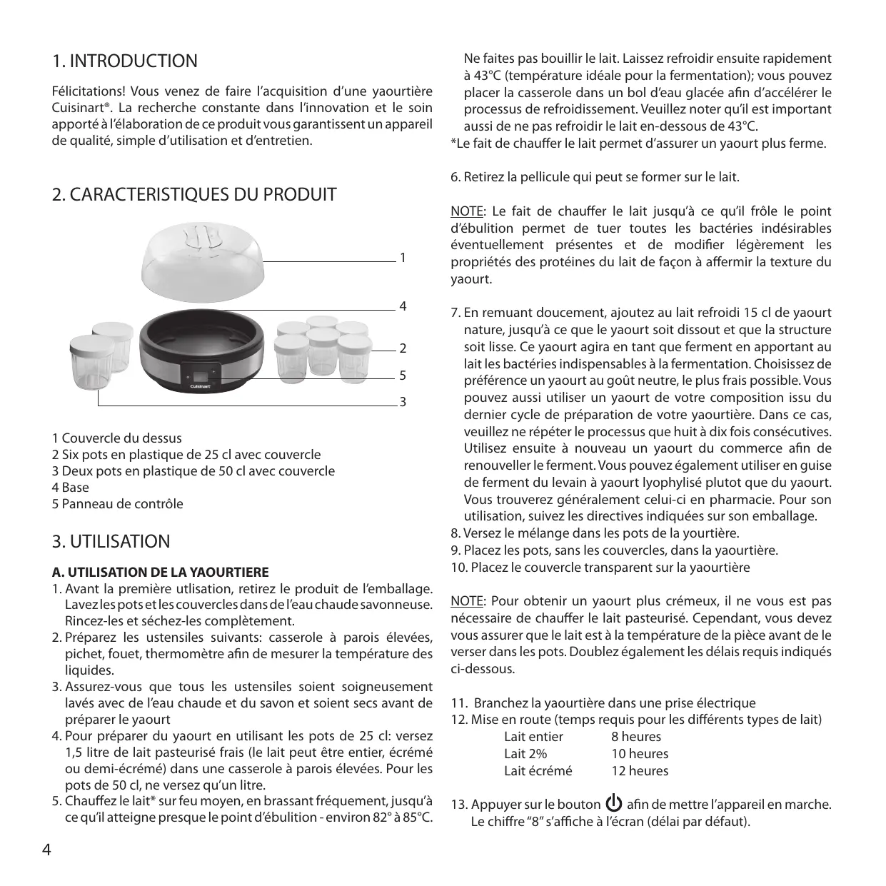 YM350E - Yaourtière CUISINART - Notice d'utilisation et mode d'emploi gratuit
