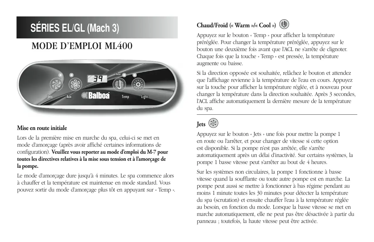 ML400 EL - Régulateur de température pour spa BALBOA - Notice d'utilisation et mode d'emploi gratuit
